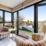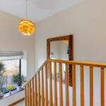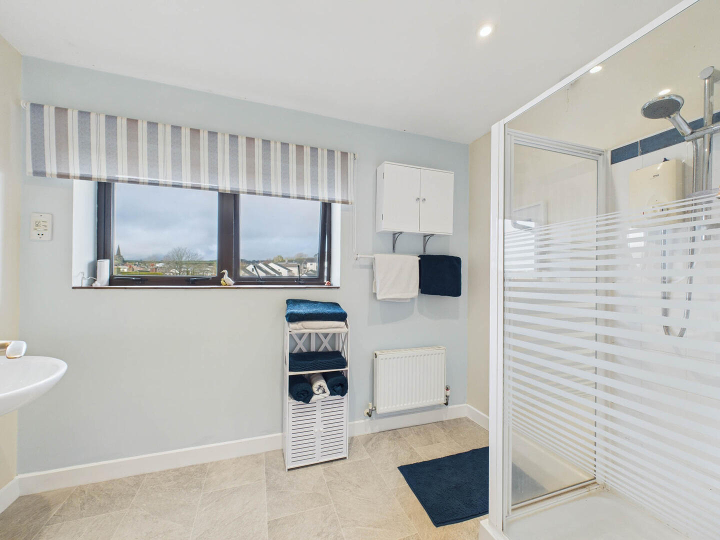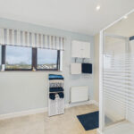 The ground floor comprises an entrance hallway with WC and storage, leading through to an open-plan living and dining area. This inviting space features a charming window seat and town views, flowing naturally into the kitchen/ breakfast room. The layout achieves an ideal balance of openness with clearly defined zones. The well-appointed kitchen/breakfast room includes contemporary units and doors opening directly onto the rear garden, creating excellent indoor/outdoor living for entertaining. Further benefits include access to a pantry, utility room and rear hallway.