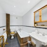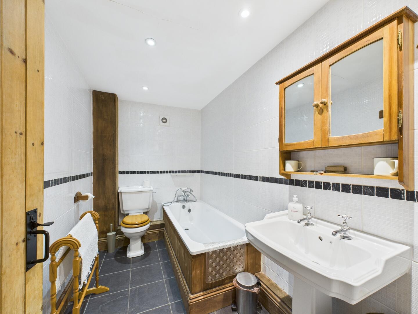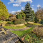 The kitchen/dining room is further enhanced by exposed beams and opens directly onto a private courtyard garden, creating a seamless connection to the outdoors and a wonderfully tranquil setting. Externally, the property boasts a landscaped garden offering several areas for entertaining, including a decked seating area, a level lawn, a lower courtyard, and a pergola conveniently located just off the kitchen. The property also benefits from two designated parking spaces.