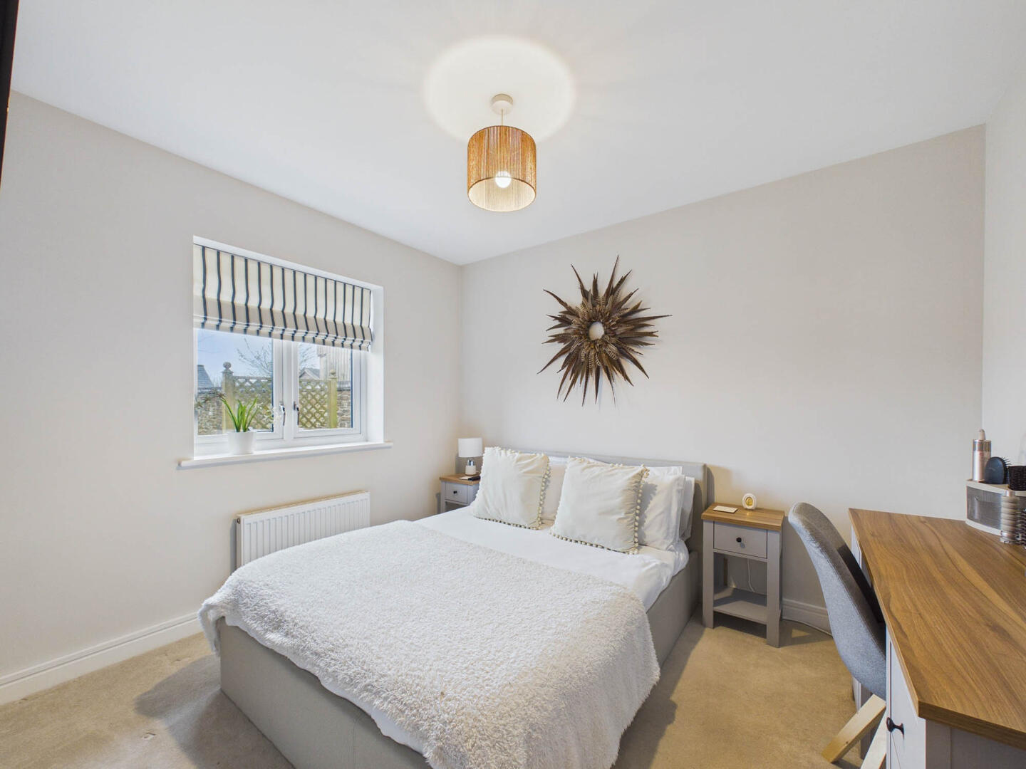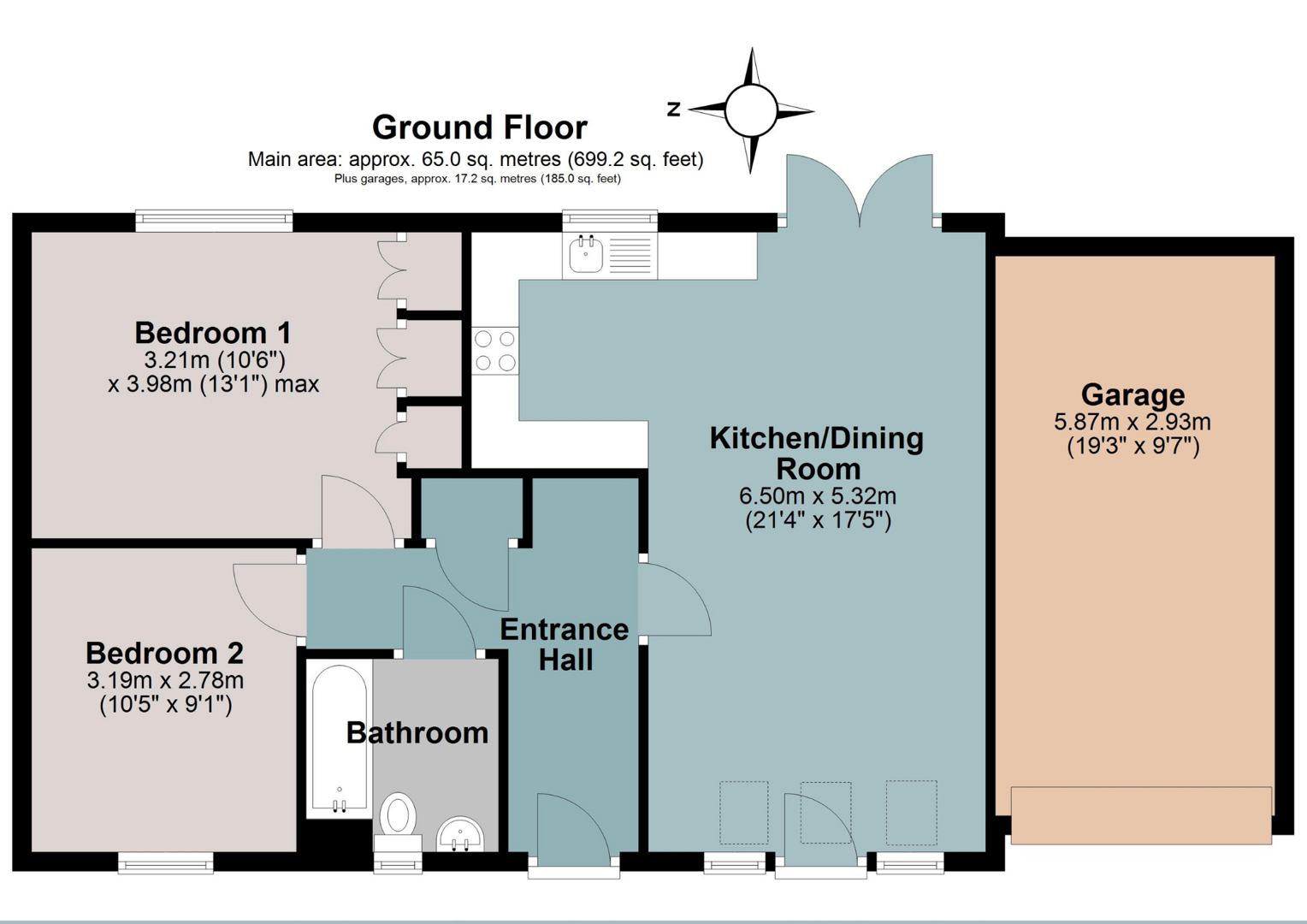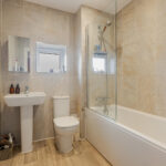 There are two well-proportioned bedrooms, with the principal bedroom benefiting from built-in storage, and a main bathroom fitted with a shower over the bath.