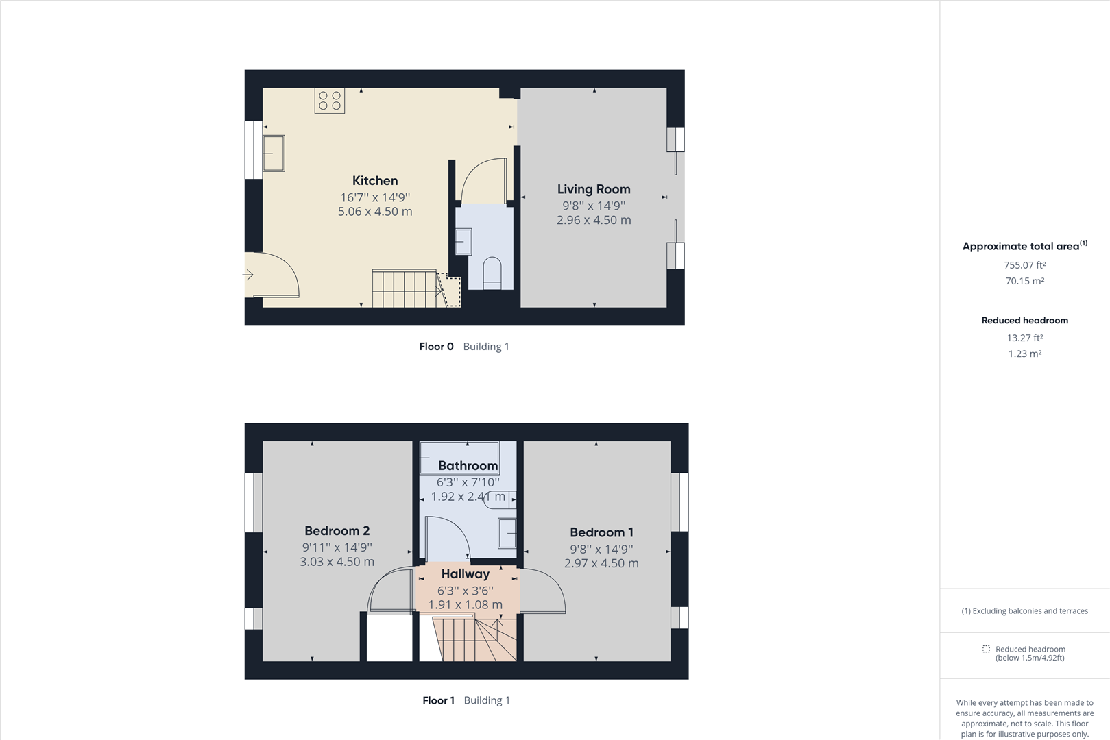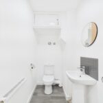 Stairs rise to the first floor where there are two generously sized bedrooms, one of which benefits from a useful storage cupboard, along with a modern family bathroom fitted with a bath and shower over.