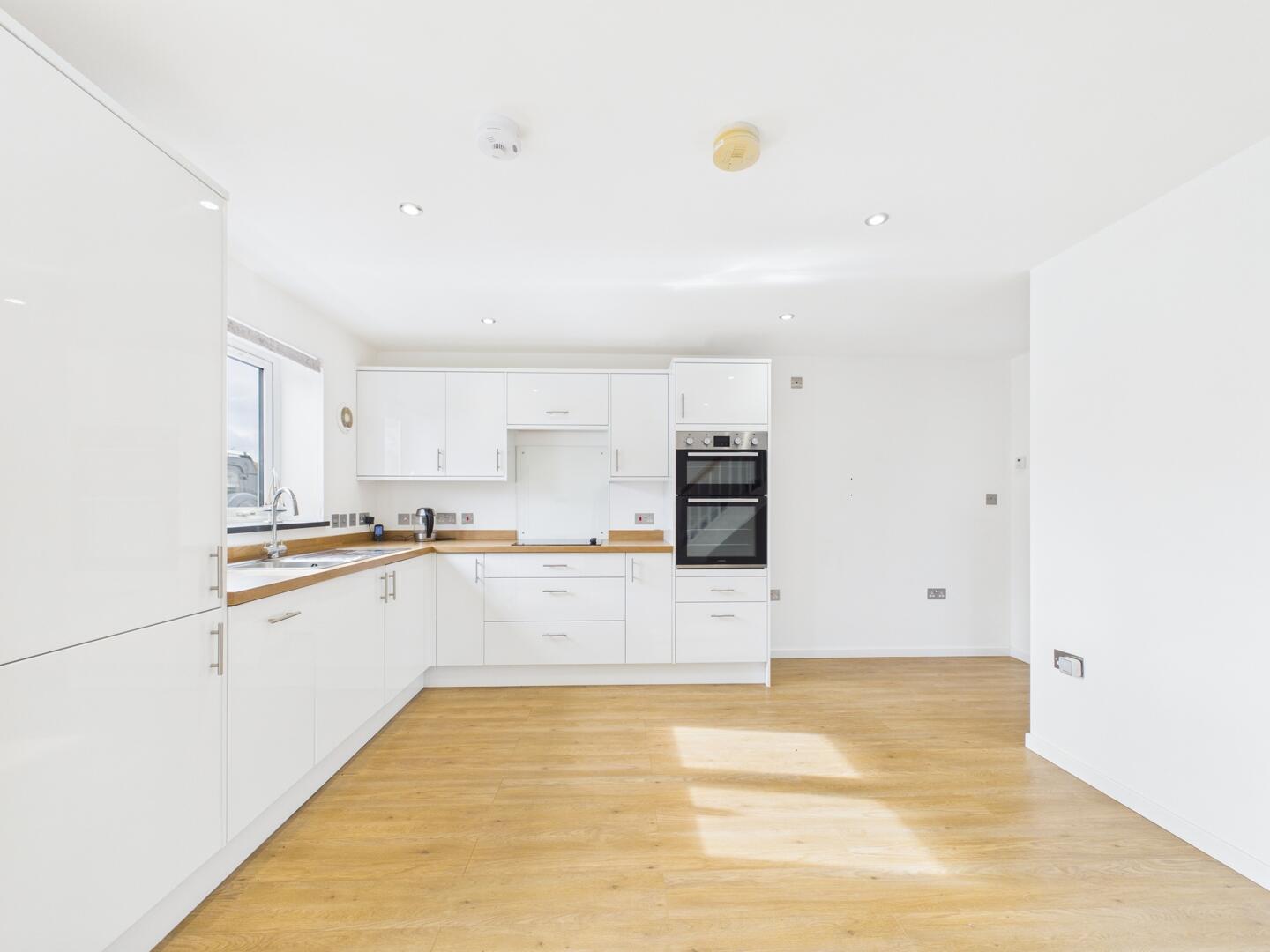 The property features a bright and spacious open-plan kitchen and dining room, fitted with a range of integrated appliances including a dishwasher, washing machine, electric oven with grill, and electric hob. There is also a convenient downstairs cloakroom.