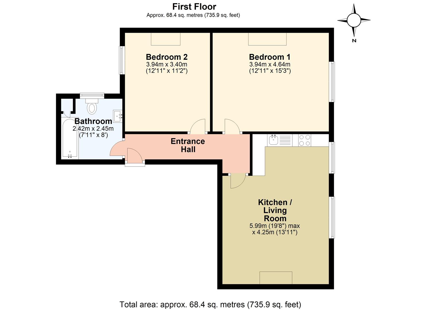 On entering the property you are greeted by high ceilings and original skirting boards inviting you to the principal living space. To the left you will find the bathroom which is part tiled, white sanitary ware, vanity unit, beauty mirror and the benefit of under floor heating.