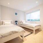 A few steps down from the main living space, you'll discover two more generously sized double bedrooms and a family bathroom. The entire property is flooded with natural light, creating a bright, airy, and spacious atmosphere. The private garden is thoughtfully designed for easy maintenance, with Milboard decking, surrounding flower beds, a BBQ area, and side access. The south-westerly orientation ensures it's a perfect sun trap, ideal for relaxing and enjoying partial water and countryside views.