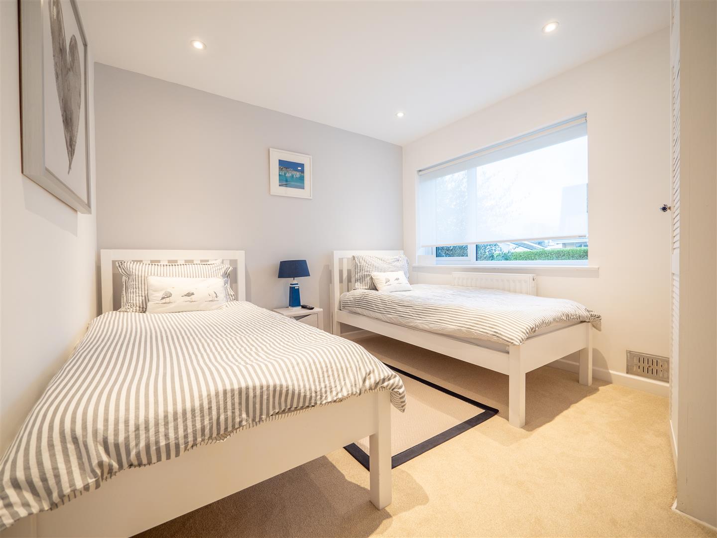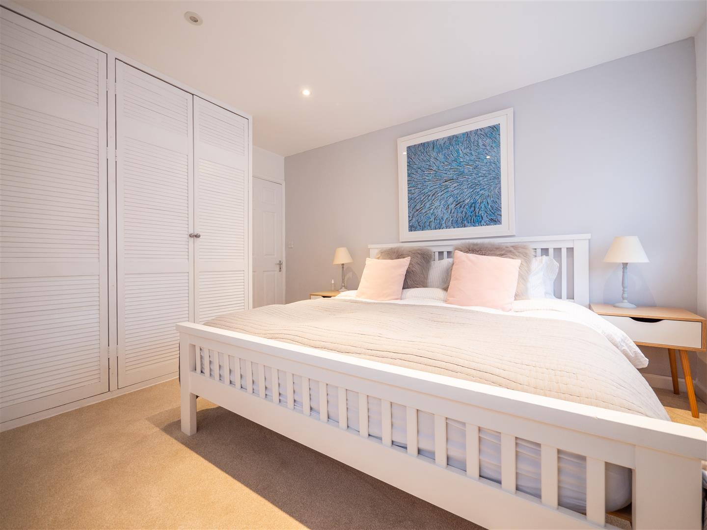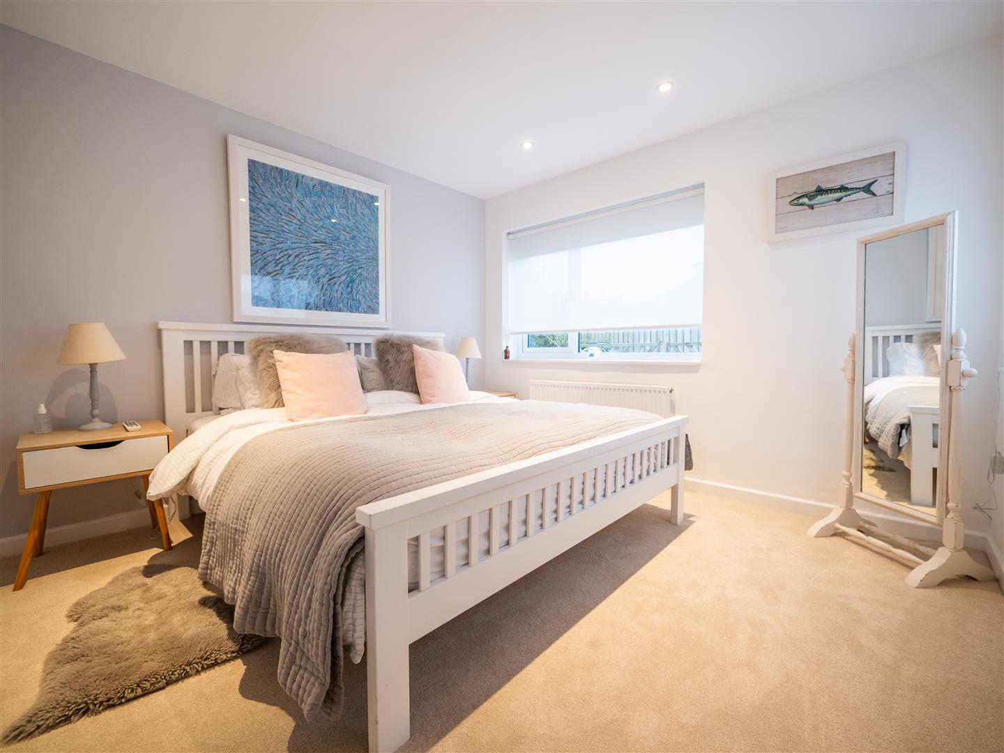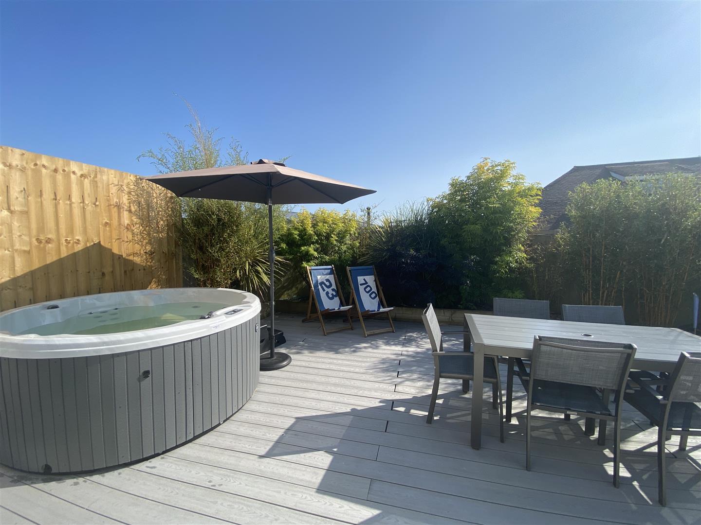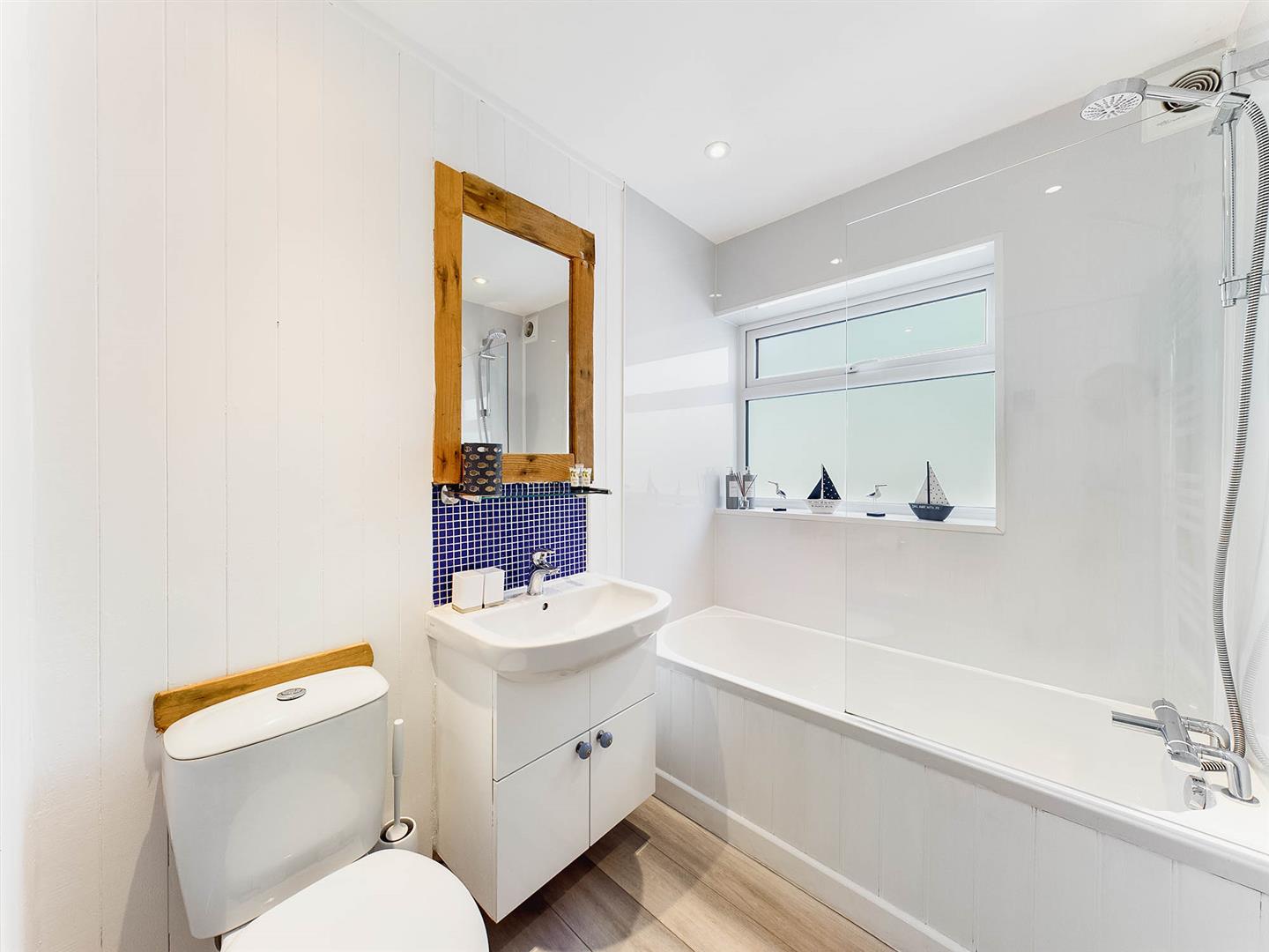 A few steps down from the main living space, you'll discover two more generously sized double bedrooms and a family bathroom. The entire property is flooded with natural light, creating a bright, airy, and spacious atmosphere. The private garden is thoughtfully designed for easy maintenance, with Milboard decking, surrounding flower beds, a BBQ area, and side access. The south-westerly orientation ensures it's a perfect sun trap, ideal for relaxing and enjoying partial water and countryside views.