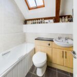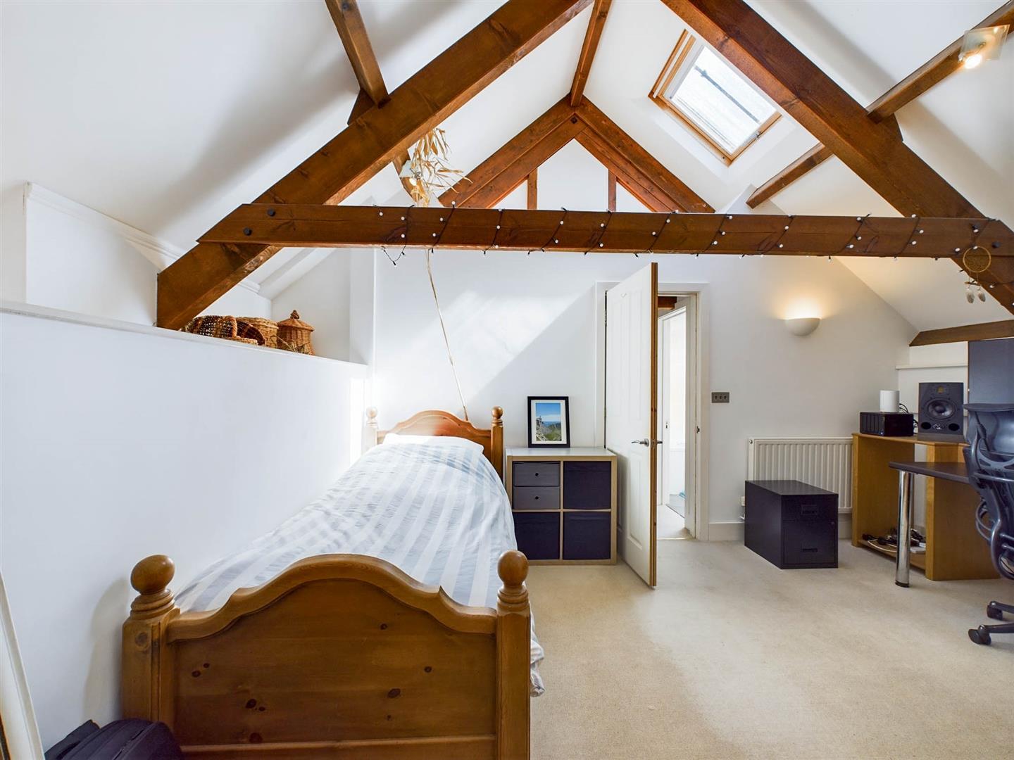 Ascending to the second floor, you will discover Bedroom 3 with exposed beams and a Velux window, adding to its character. The family bathroom is also situated on this floor and includes a shower over the bath with Velux window.