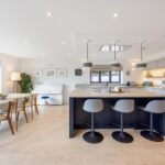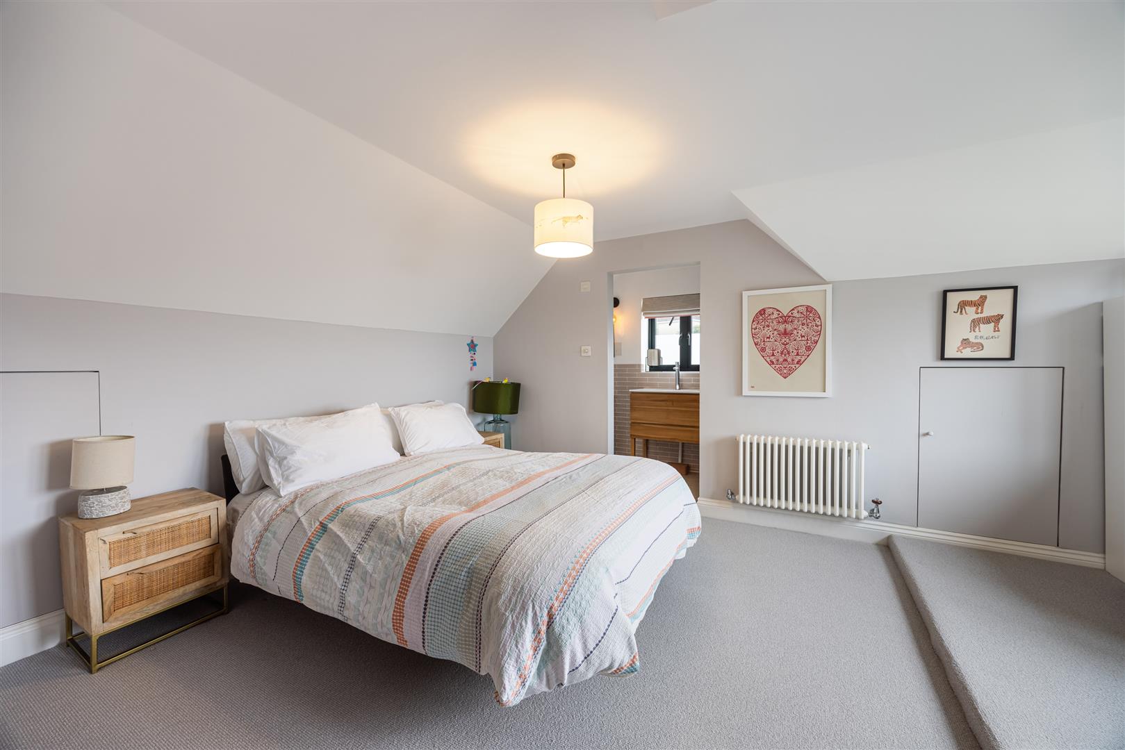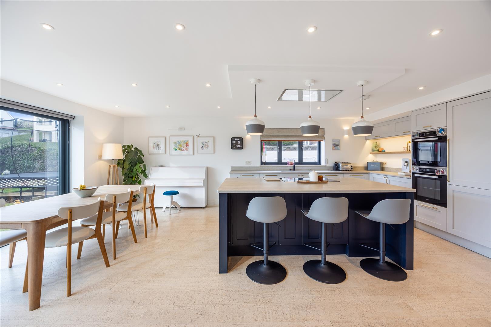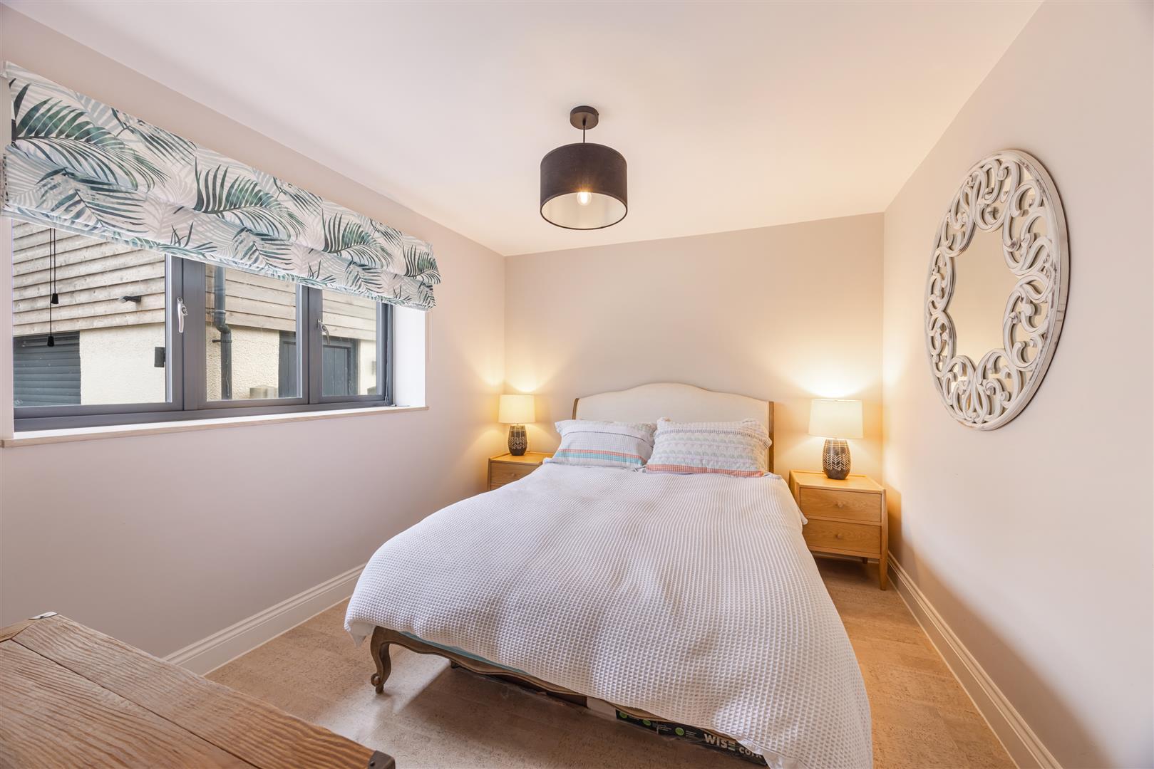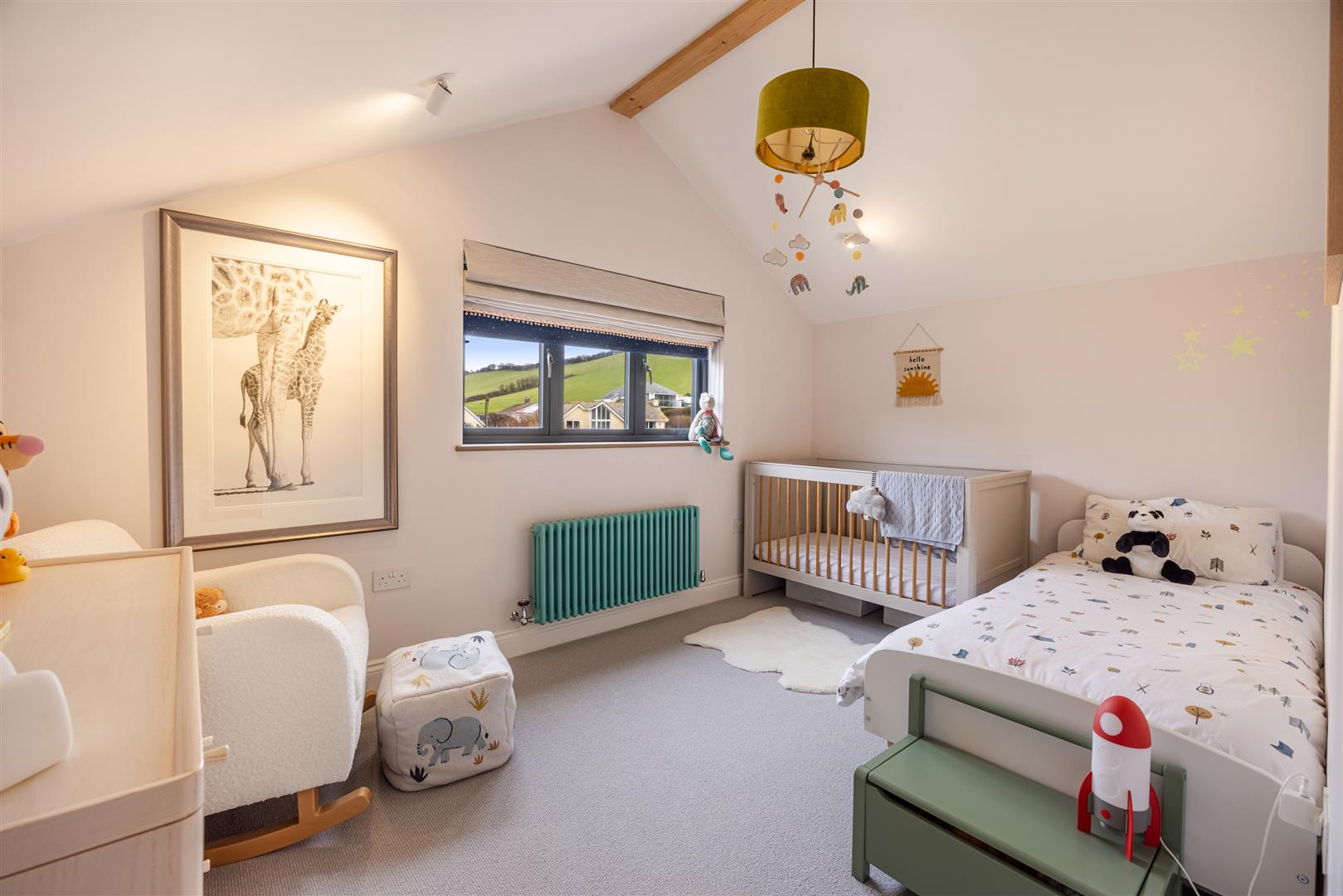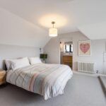 Upstairs, vaulted ceilings and bespoke finishes create an atmosphere of refined elegance. The master suite is a private sanctuary, complete with a spacious en-suite bathroom, built-in wardrobes, and a charming window seat perfectly positioned to take in the mesmerising sea views. Additional accommodation includes a stylish double bedroom, a luxurious family bathroom, and a grand bedroom with four bespoke bunk beds. Another en-suite bedroom benefits from eaves storage, with three of the principal bedrooms enjoying magnificent coastal outlooks.