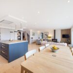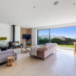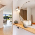 The ground floor also offers a separate WC, a beautifully designed en-suite bedroom, and a sophisticated snug/media room. Thoughtfully placed glass panels throughout the hallway ensure uninterrupted sea views at every turn. The ground floor also benefits from underfloor heating throughout, ensuring comfort and warmth year-round.