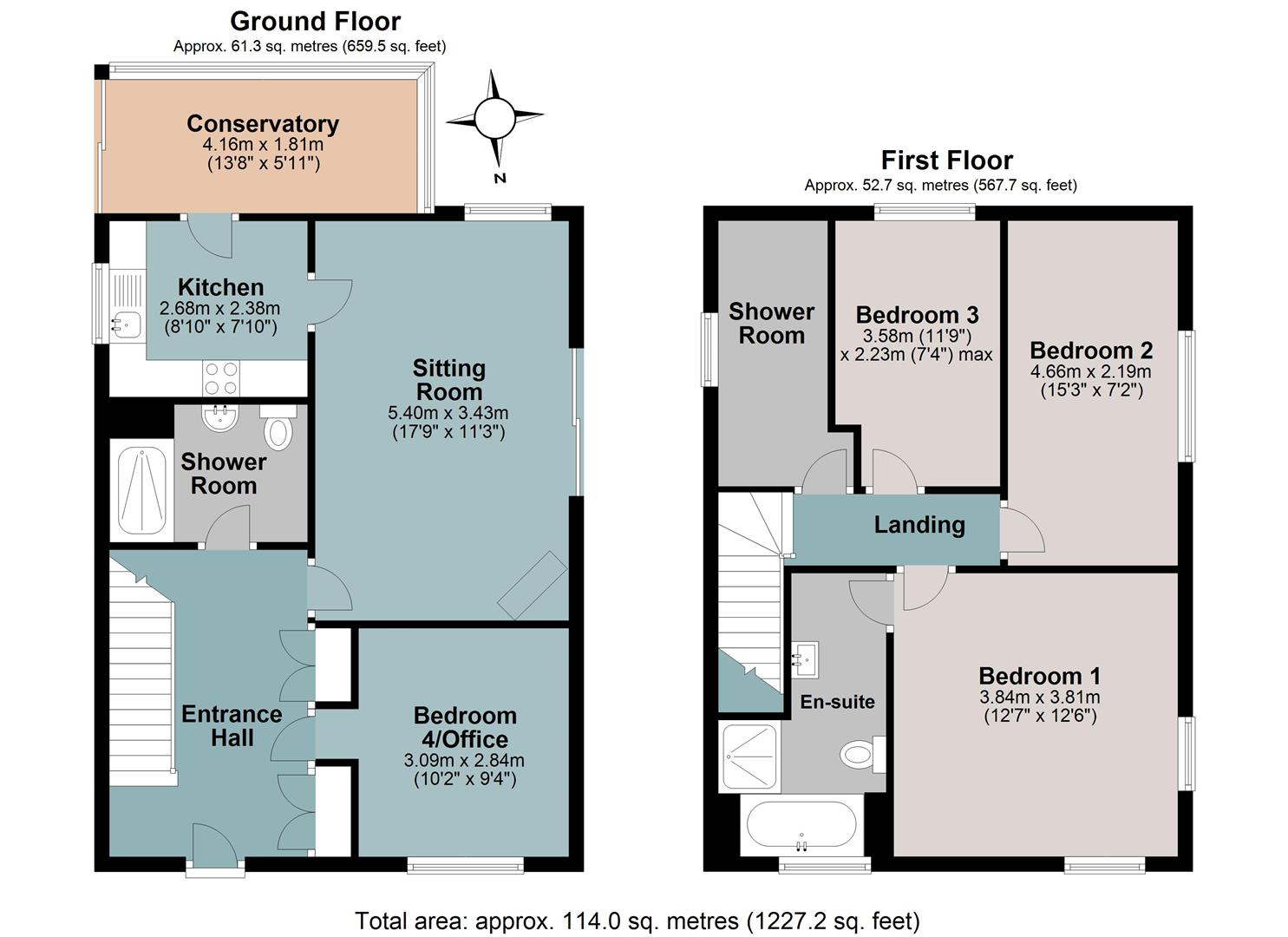Upon entering the property, you are greeted by a spacious open hallway equipped with built in storage. A unique feature is there is a secret door that leads into the office, which can also be used as the fourth bedroom or play room. The ground floor offers a spacious living room with a charming wooden feature wall, log burner and a sliding door that opens directly into the garden. Adjacent to the living room is the kitchen, which includes both wall and floor cupboards and has a door leading to the conservatory. The conservatory provides access to the garden. The ground floor also features a shower room complete with a walk-in shower.