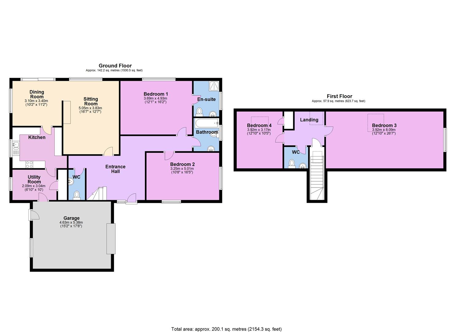 Upon entering, you're welcomed by a spacious hallway that guides you through the well-planned layout of this home. To the right, a hallway leads to a large, double-aspect bedroom, a family bathroom, and a master bedroom that overlooks the garden complete with built-in wardrobes and an en-suite shower, providing a peaceful retreat. To the left, the layout flows into a light-filled living room, where a double-sided log burner creates a warm and inviting focal point. This space wraps seamlessly around to the dining room, with sliding doors that open onto a level garden-a perfect spot for entertaining or relaxing. Adjacent to the dining room, you'll find a well-equipped kitchen, a practical utility room, and access to the substantial integral garage, which includes a workshop area, electric doors, a side entrance, and a convenient WC in the hallway. The understairs storage completes this functional space.
