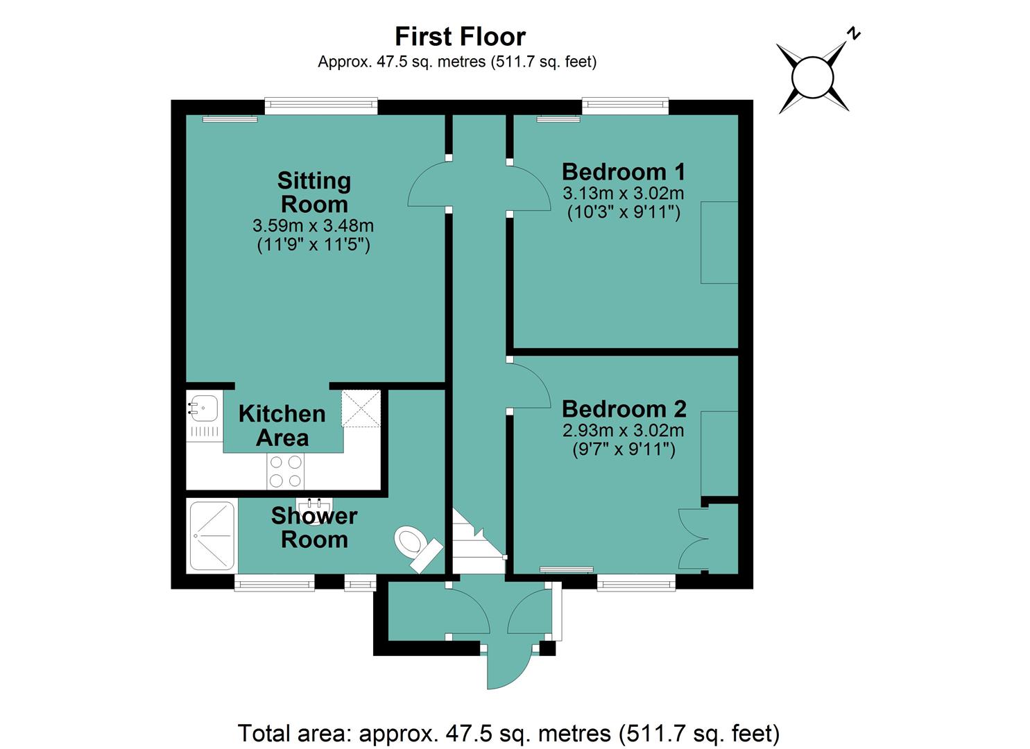 The flat comprises two bedrooms and a shower room. Bedroom 1 benefits from a characterful feature fireplace and bedroom 2 has the added convenience of fitted storage.