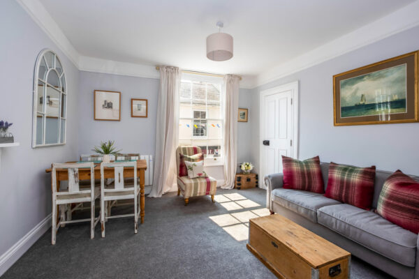 Flat A is accessed via a door located directly on Fore Street. From here, a passageway leads to the front door of the apartment. Upon entering, there is a useful entrance area providing space for hanging coats and storing shoes before ascending the stairs to the main accommodation.