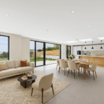 The heart of the home is an open-plan living area, where the kitchen, dining, and snug spaces flow seamlessly together. Bi-fold doors open directly onto a large patio, creating an effortless connection between the indoors and outdoors, all set against the tranquil backdrop of the countryside and Salcombe Harbour. The kitchen itself has been designed with both practicality and elegance in mind, featuring integrated Siemens appliances, an island for hosting, and a hidden utility and pantry area - perfect for both family living and entertaining.