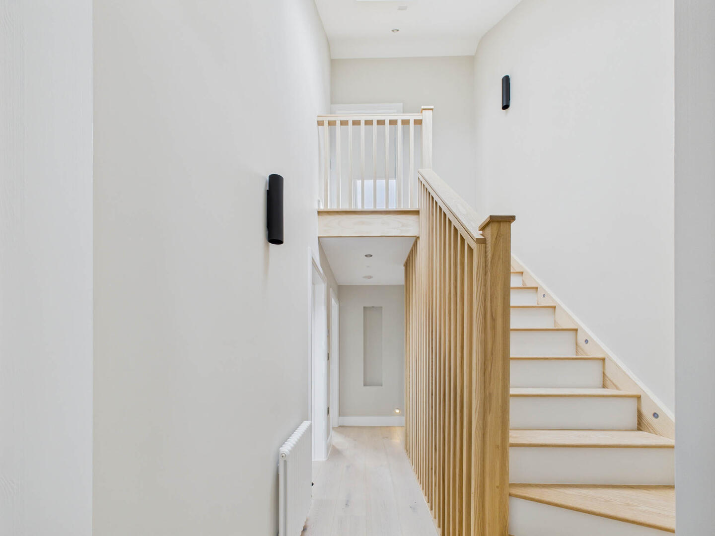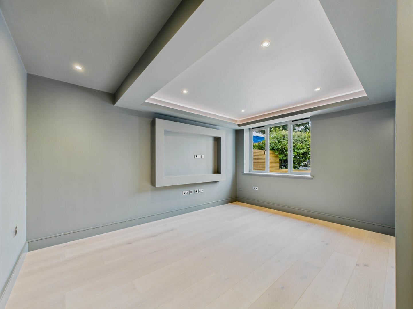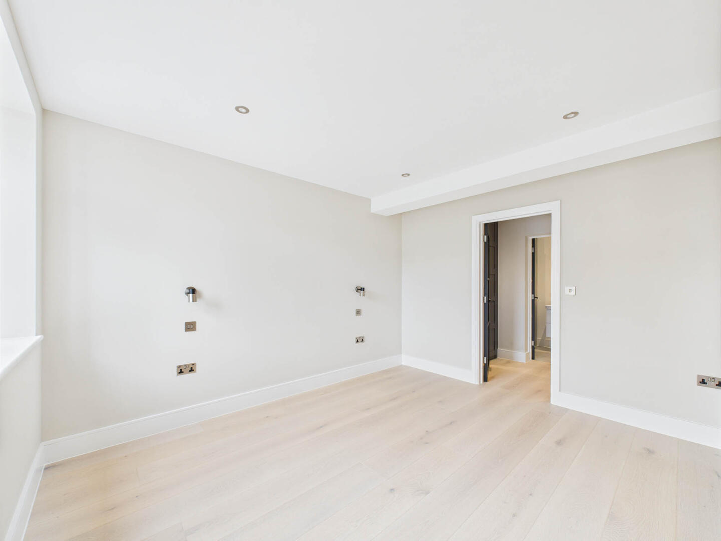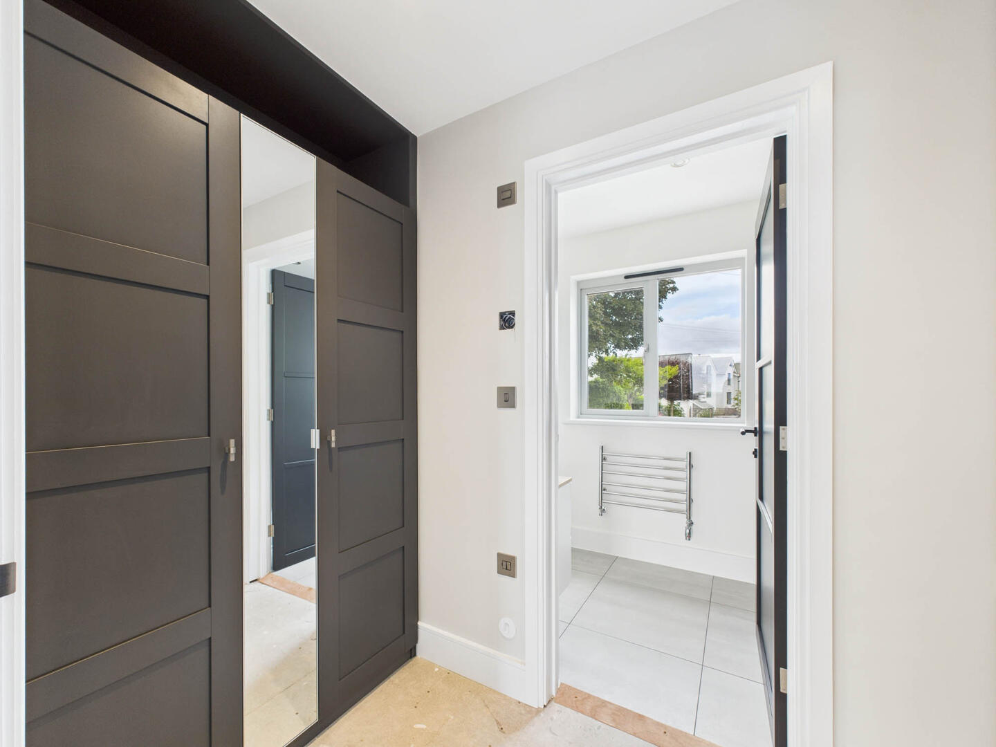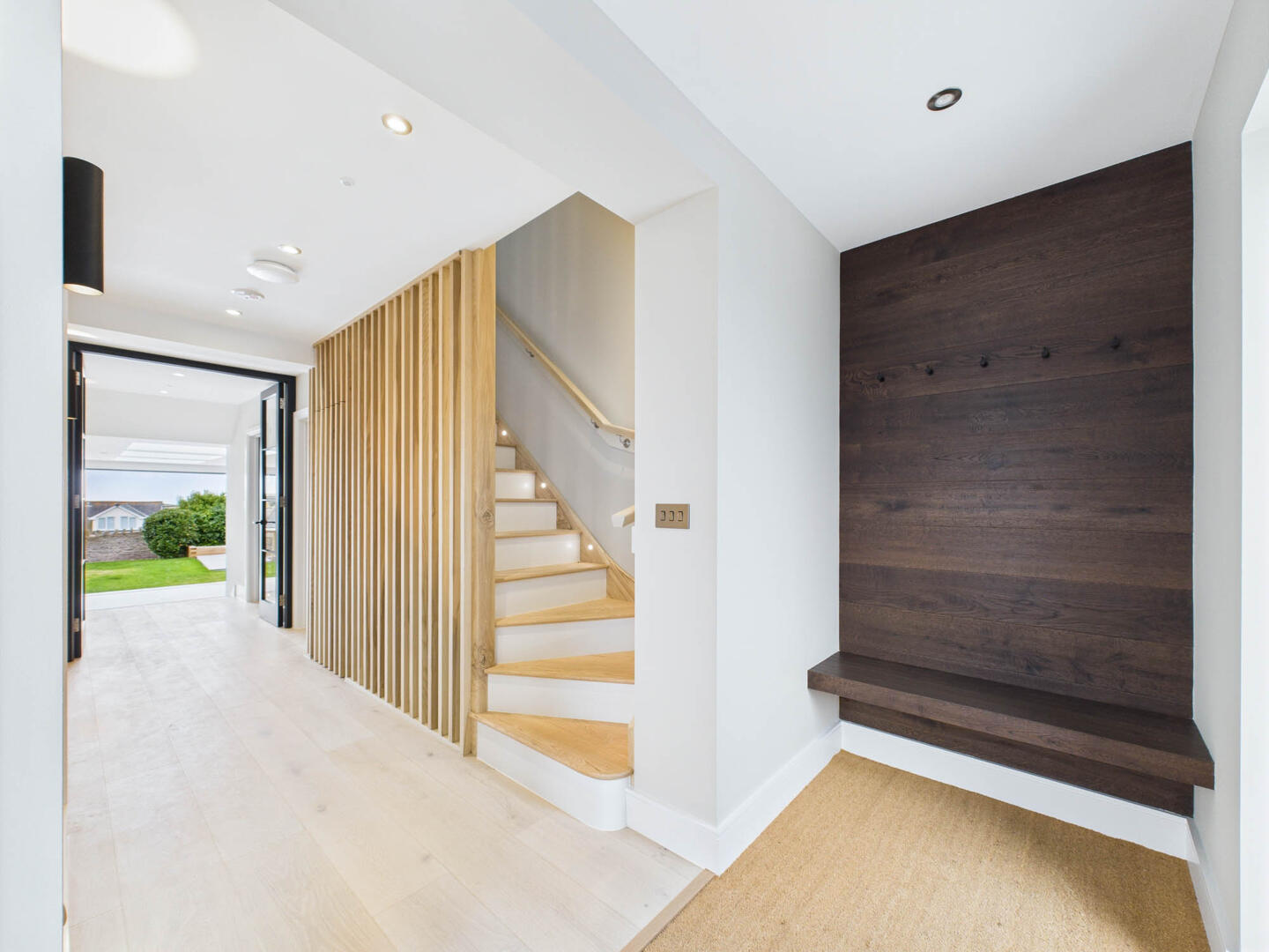 The ground floor also offers a separate living room with a built-in media wall, a bedroom with its own dressing room and en-suite bathroom, a plant room, and access to the garage. Upstairs, the bespoke staircase leads to the main living quarters. On the first floor, you'll find three spacious bedrooms, two of which offer sea views and Juliet balconies, as well as en-suites. The second bedroom also features its own dressing room, and a further shower room serves the fourth bedroom.