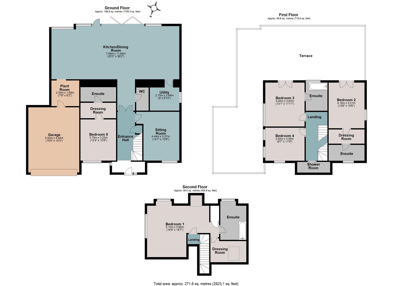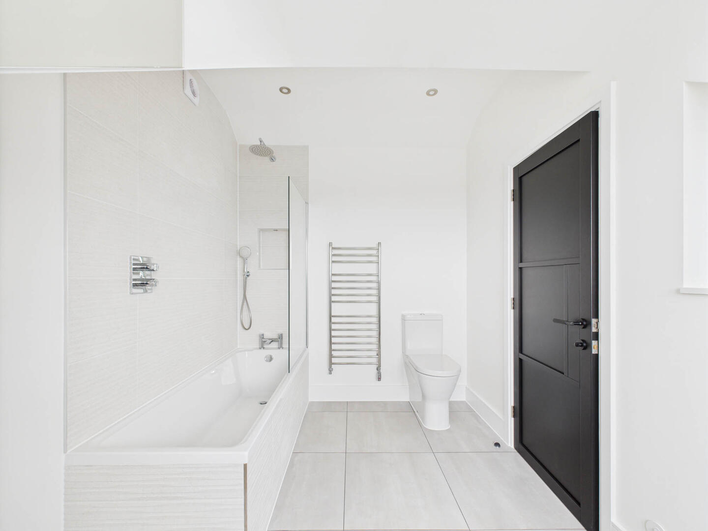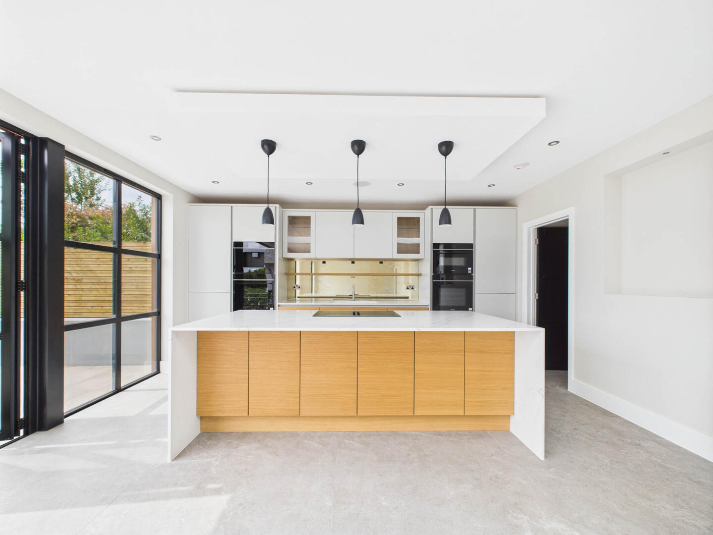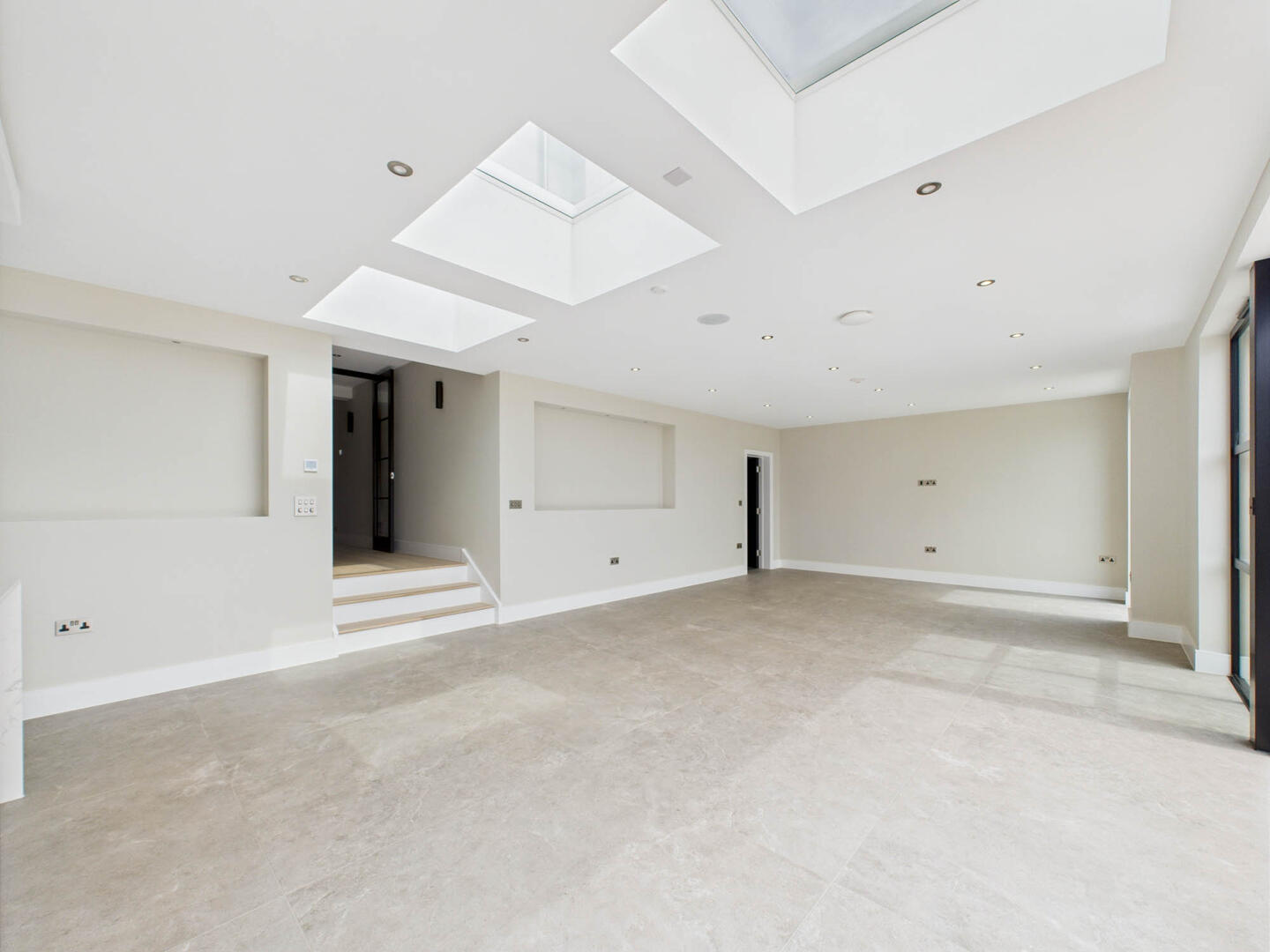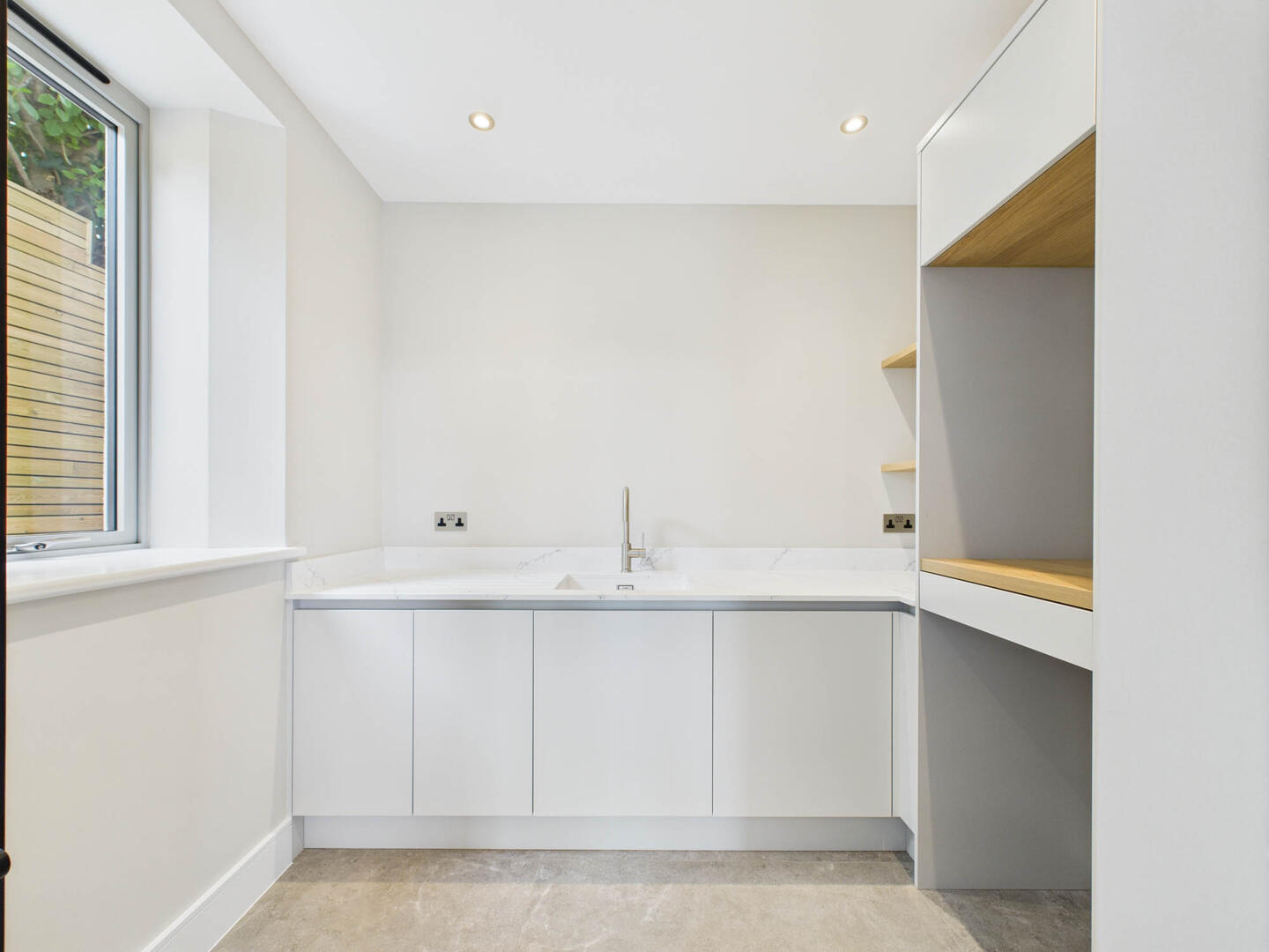 The ground floor also offers a separate living room with a built-in media wall, a bedroom with its own dressing room and en-suite bathroom, a plant room, and access to the garage. Upstairs, the bespoke staircase leads to the main living quarters. On the first floor, you'll find three spacious bedrooms, two of which offer sea views and Juliet balconies, as well as en-suites. The second bedroom also features its own dressing room, and a further shower room serves the fourth bedroom.