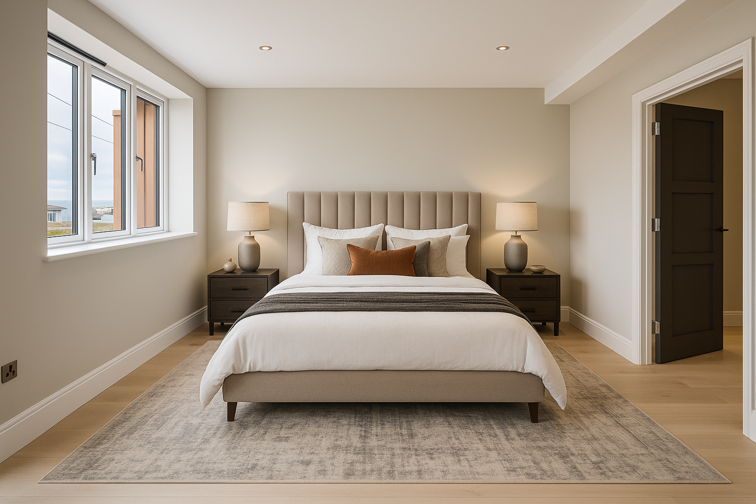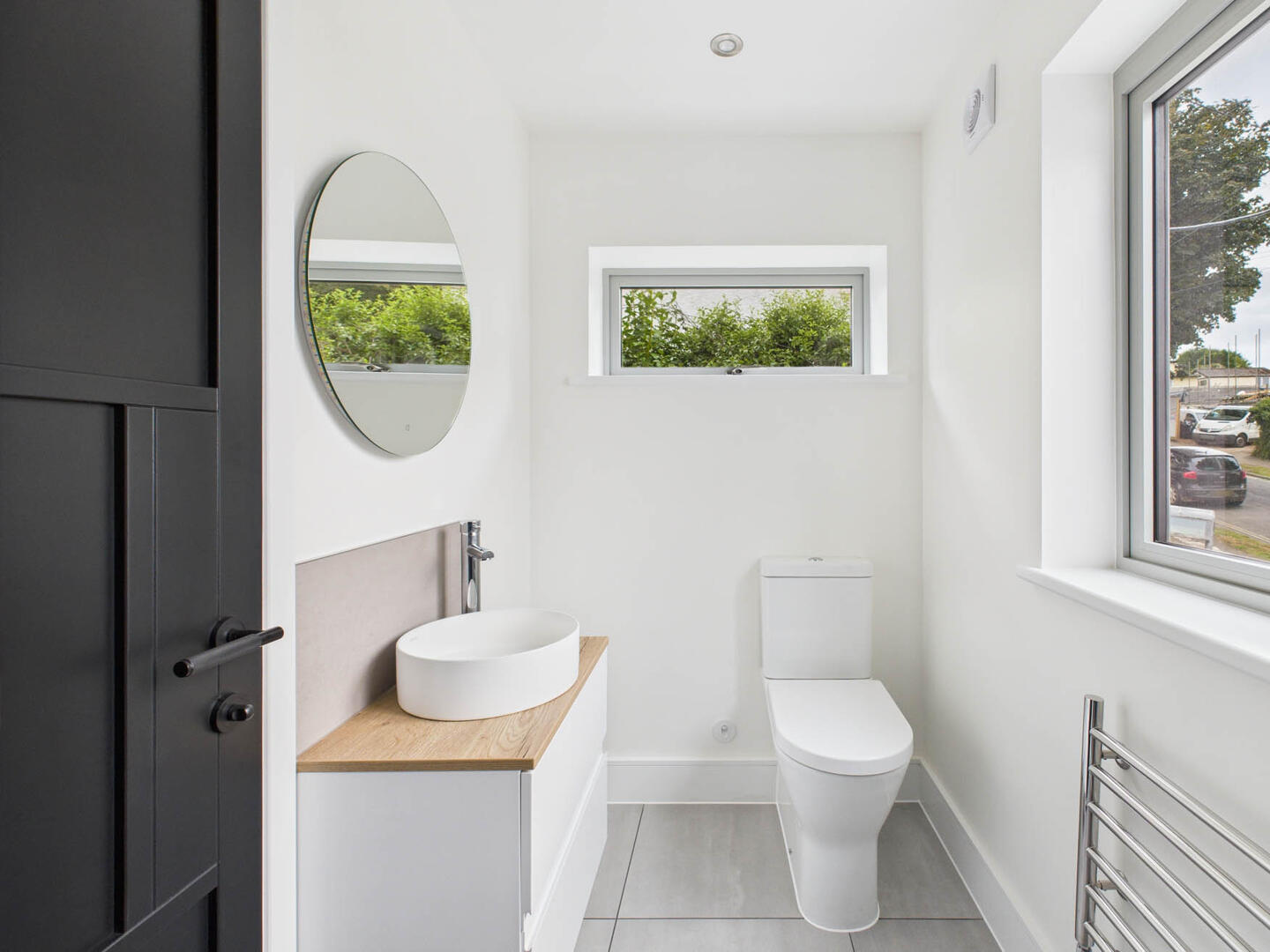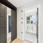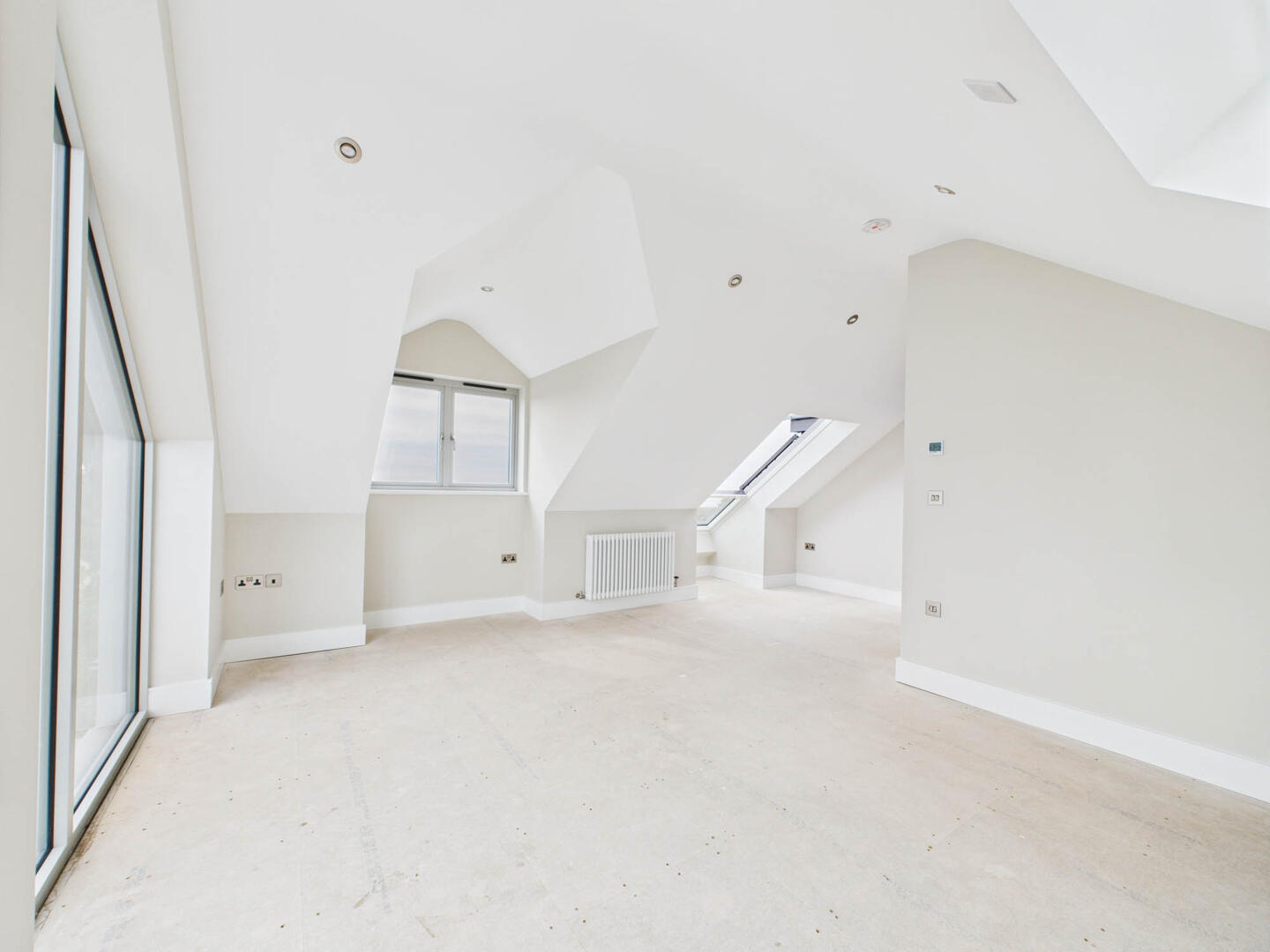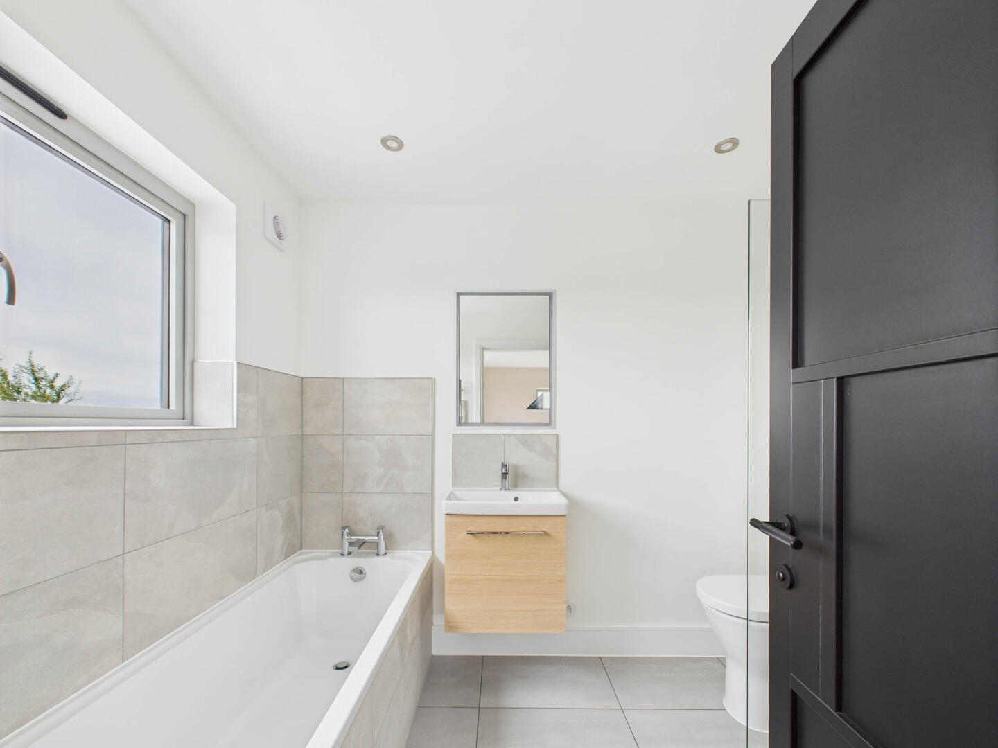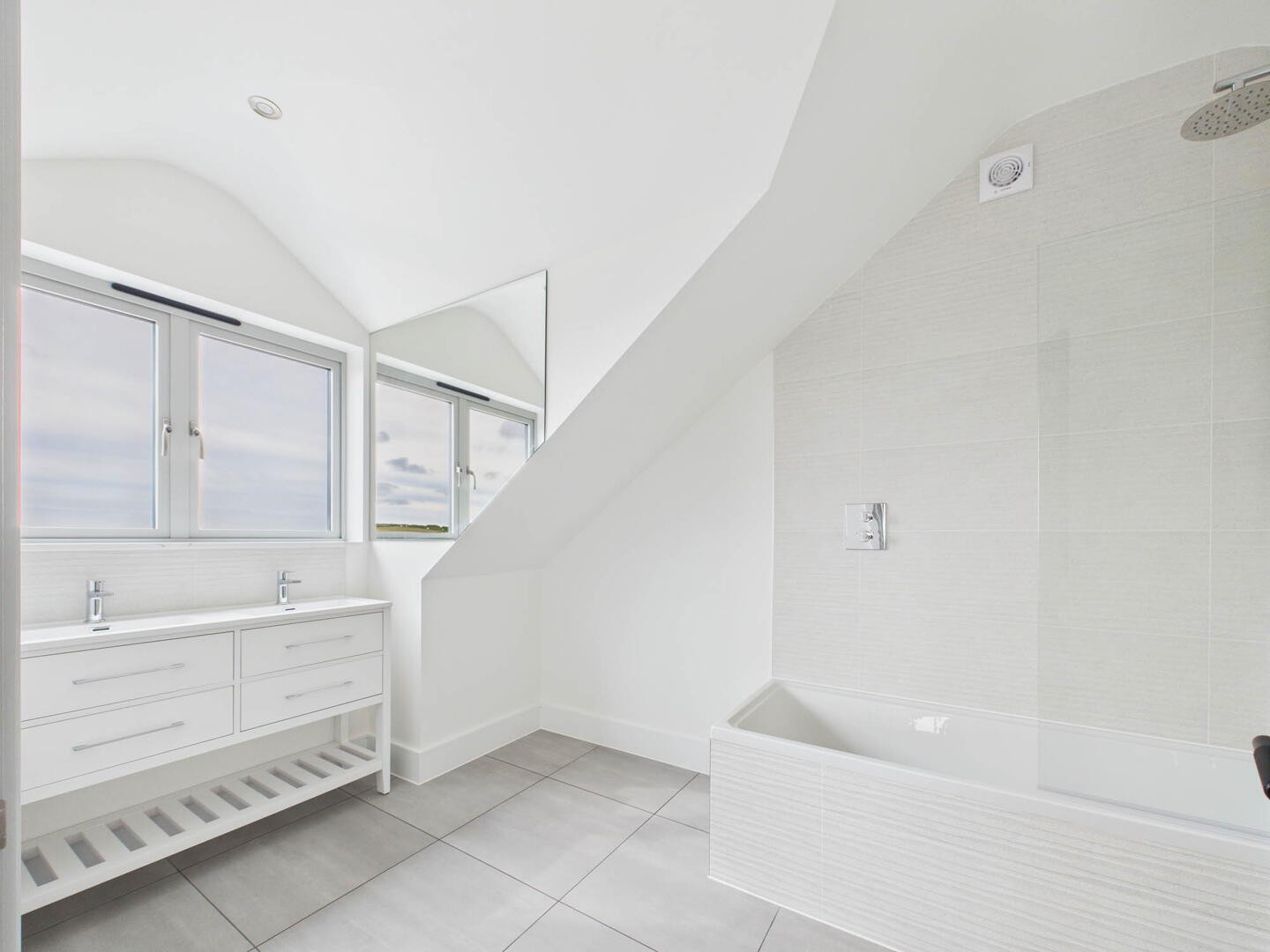 As you enter the principal suite, you're immediately struck by the breathtaking views. A stunning floor-to-ceiling framed window floods the room with natural light, revealing a postcard-perfect panorama of Salcombe Estuary, the rolling hills of the South Hams, and even stretching toward Dartmoor. It's a sight that captures the essence of coastal living at its finest. It's a view that feels almost unreal, as if you're living in a painting. In addition, a Velux Cabrio window opens up to a balcony, elevating the experience, allowing you to step out and feel on top of the world. The suite is designed to embrace these magnificent views, with a spacious en-suite bathroom and dressing room that add the perfect touch of luxury. It's a room that makes you feel as though you've found your own private sanctuary.