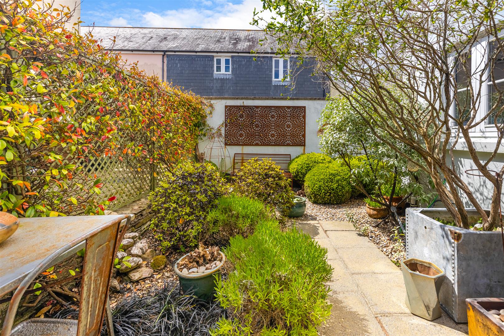 A convenient downstairs WC adds practicality, while the kitchen, positioned at the rear, provides direct access to the garden-perfect for easy indoor-outdoor living. Upstairs, the main bedroom offers generous proportions, while the second double bedroom benefits from built-in storage that also houses the hot water tank. A family bathroom with a shower over the bath serves both bedrooms, and there's access to the loft for additional storage. The rear garden is designed for low maintenance and includes a charming patio courtyard bordered by mature shrubs. A few steps lead up to a detached, insulated home office with electricity-ideal for remote working, hobbies, or creative pursuits. There's also a space suitable for parking a small car within the garden boundary, along with potential to park just outside the property.