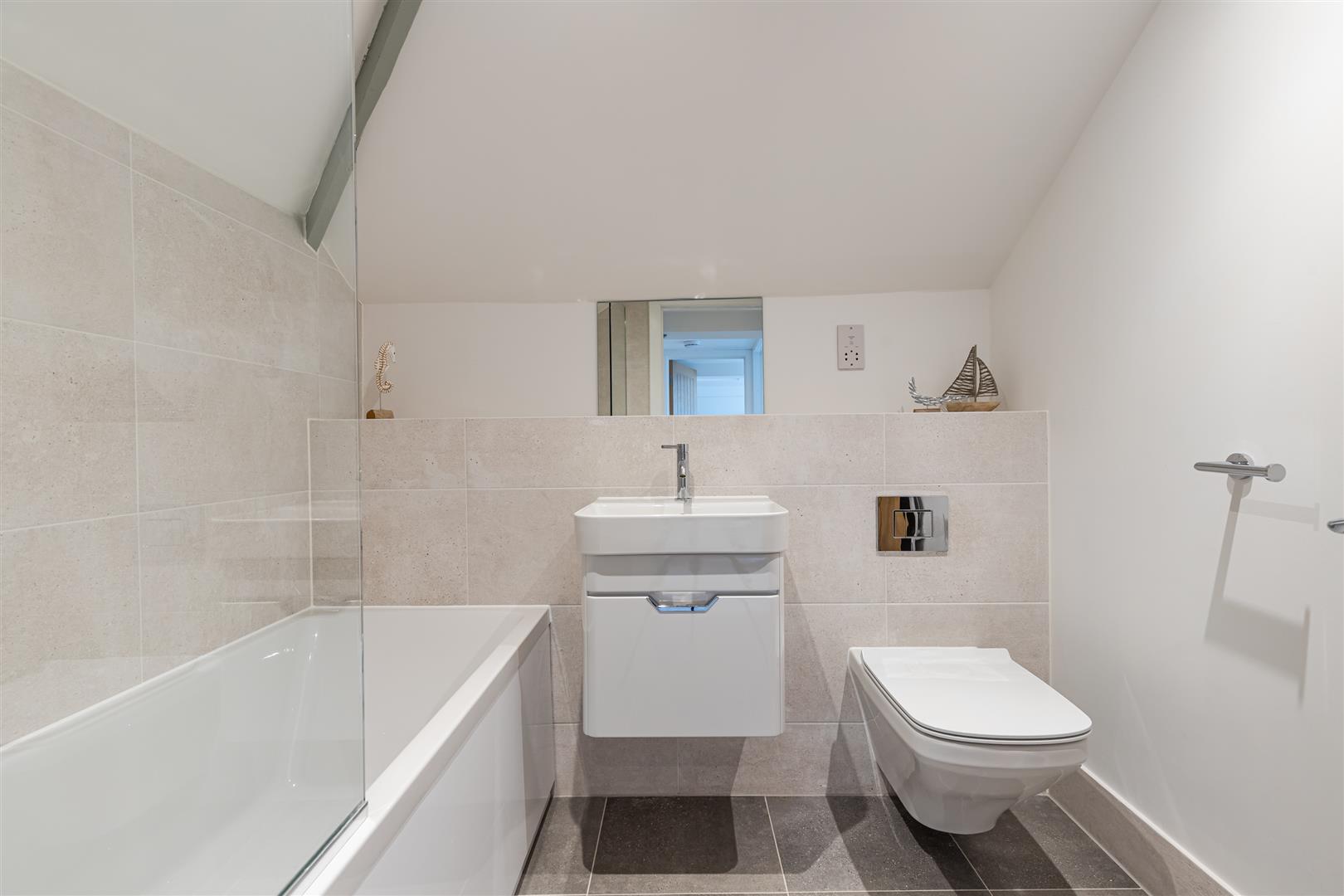 The first floor has a spacious lounge boasting large windows that provide picturesque views of the nearby church. The open-plan kitchen and dining area offer a seamless flow for modern living, with direct access to the rear courtyard. A separate W/C completes this level.