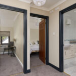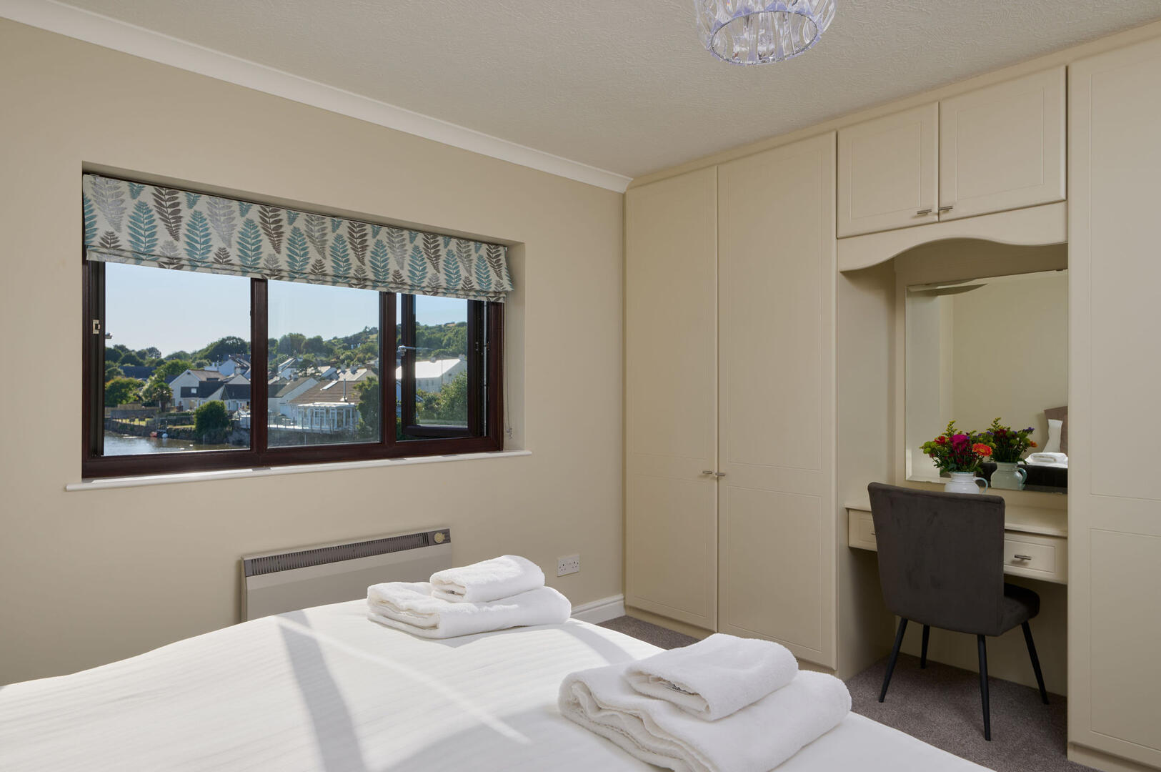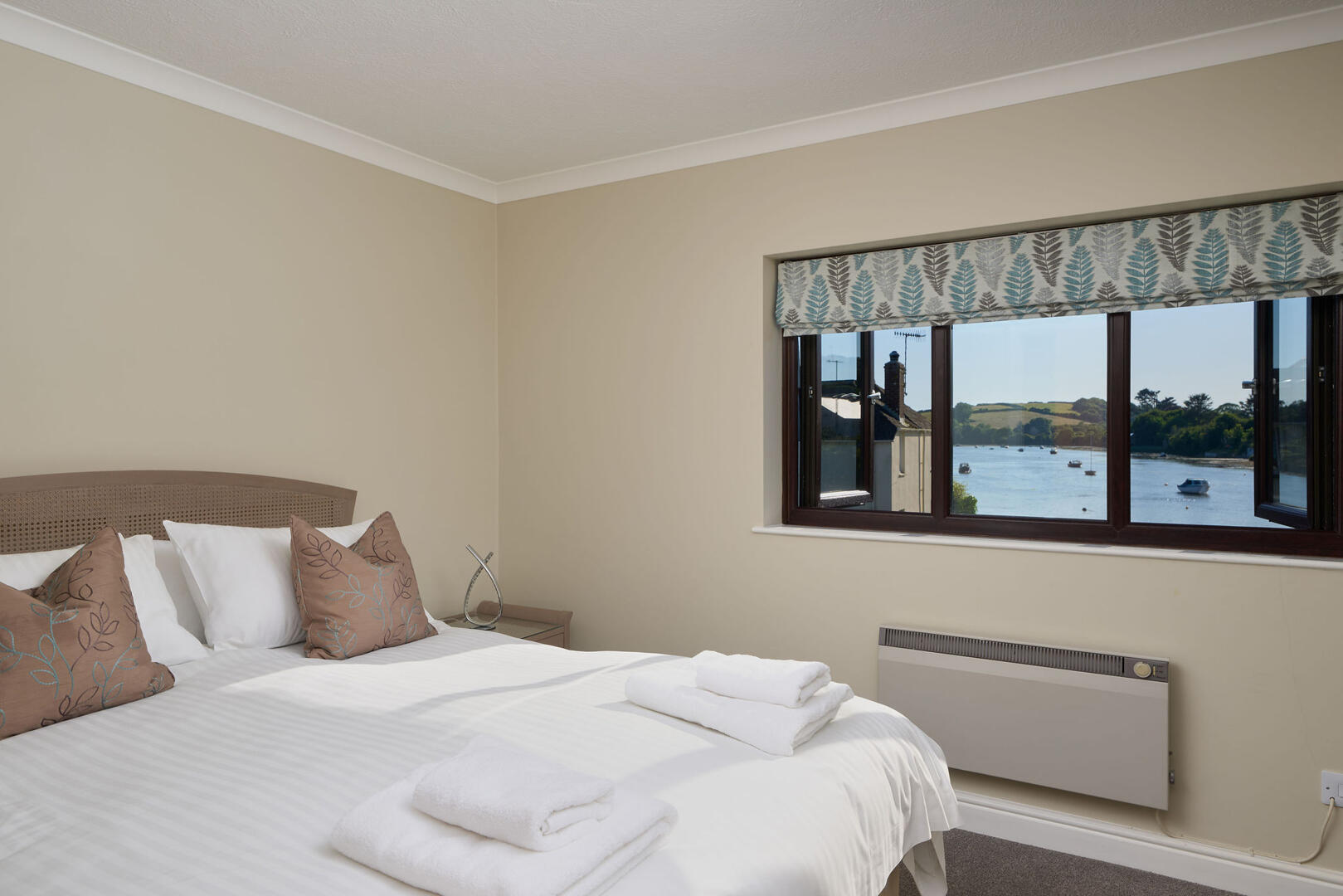Stairs lead to the first floor, which offers three well-proportioned bedrooms. The principal bedroom benefits from an en-suite shower room and enjoys lovely views over the creek. The remaining bedrooms are served by a modern family bathroom.