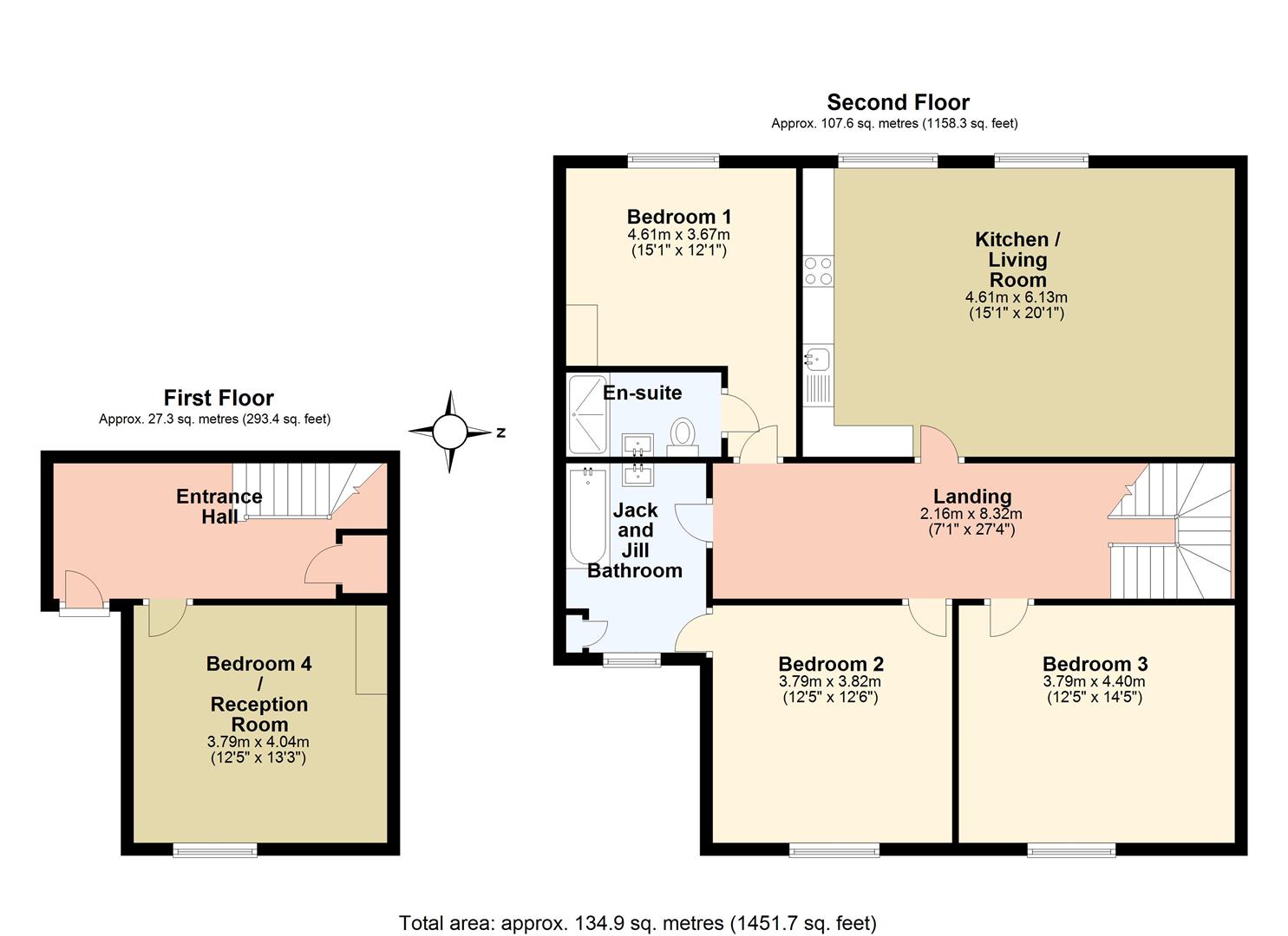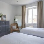 The main bedroom enjoys views of St. Edmund's Church, a cast iron fireplace, and a modern en-suite. Bedroom two offers easterly views and direct access to the family bathroom, which also serves bedroom three. The bathroom includes a bath with shower, vanity unit, heated towel rail, and underfloor heating.