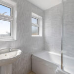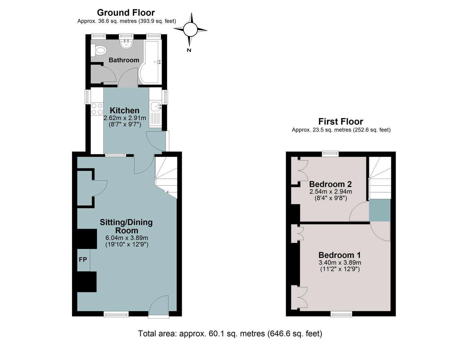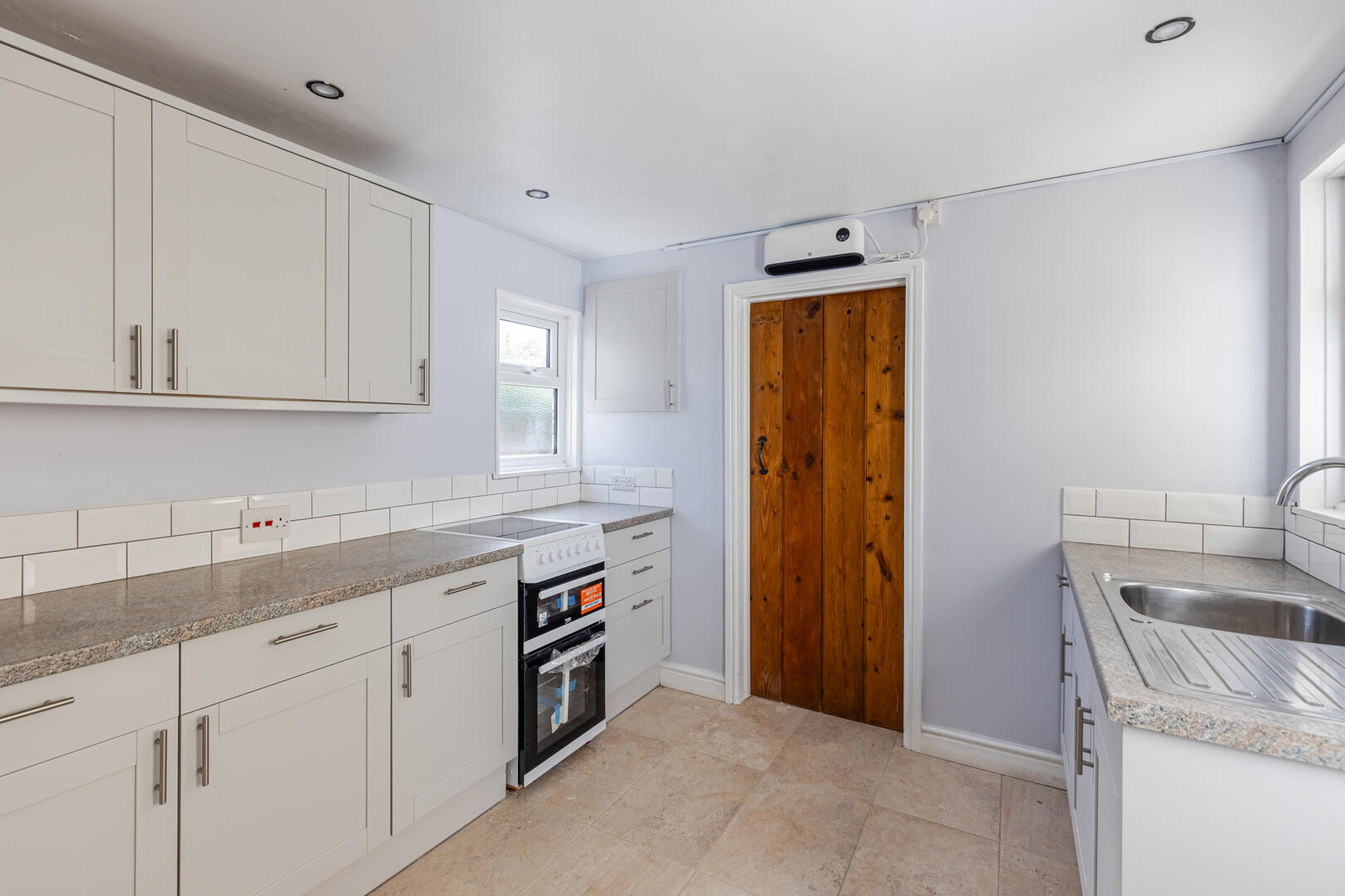 Adjacent to the living area is a newly fitted kitchen, offering a clean and modern finish. A recently renovated bathroom completes the ground floor. From the kitchen, a door provides access to a shared pathway leading to the rear courtyard, which has been updated with new fencing. Upstairs, the cottage offers two bedrooms, both benefiting from built-in storage and double glazed sash window in Bedroom 1.