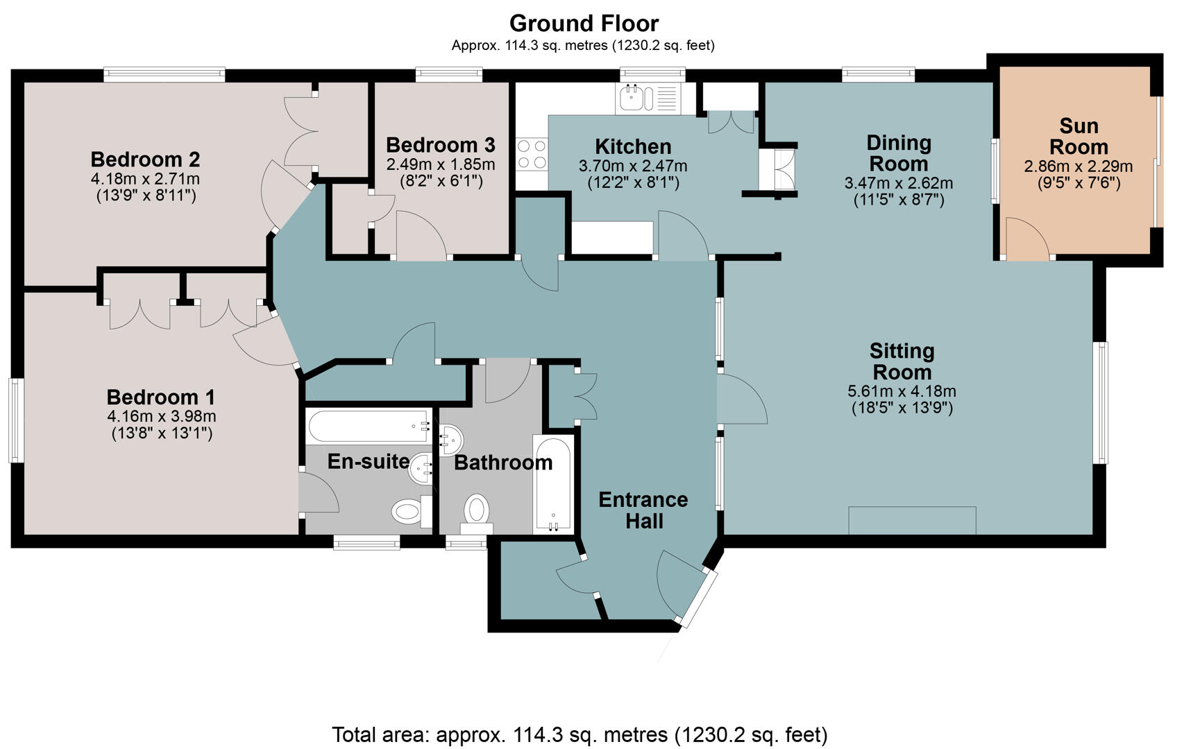 The well-arranged accommodation continues with a galley-style kitchen, three comfortable bedrooms and a family bathroom, while the principal bedroom benefits from an en-suite shower room.