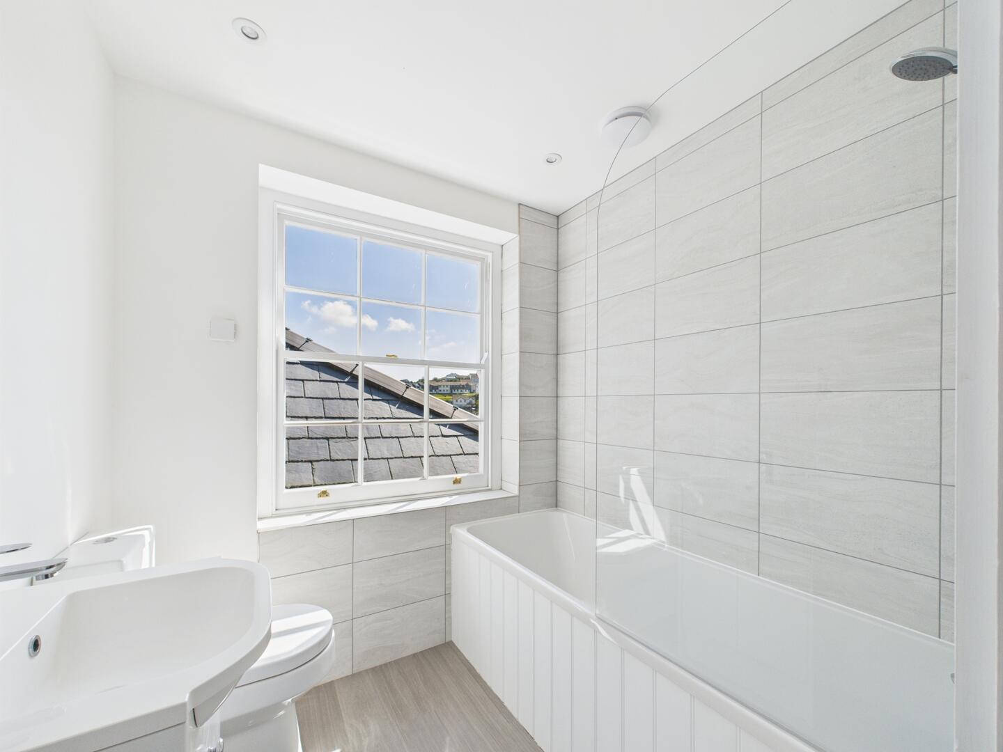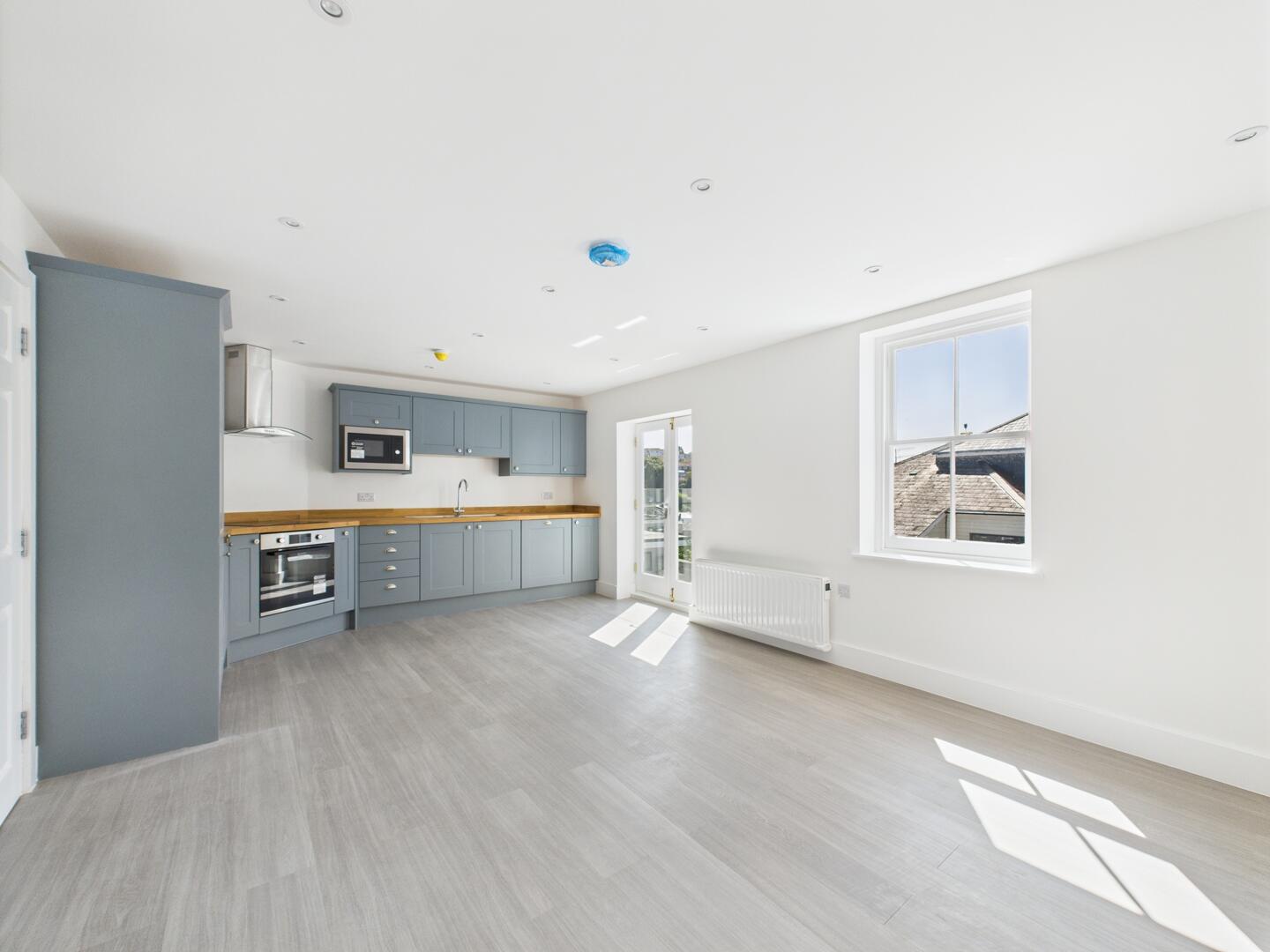 Enjoy modern comfort and character in this beautiful apartment within 91-93 Fore Street — one of Kingsbridge’s most iconic buildings. Located in the heart of the town, Apartment G offers an entrance hallway with storage/ utility cupboard, leading to a light-filled landing via the staircase.